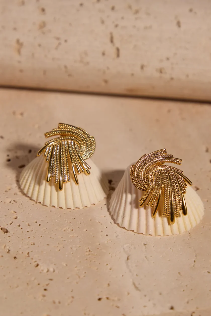 Aros de metal dorado, con formas orgánicas, compuestas por cadenas.