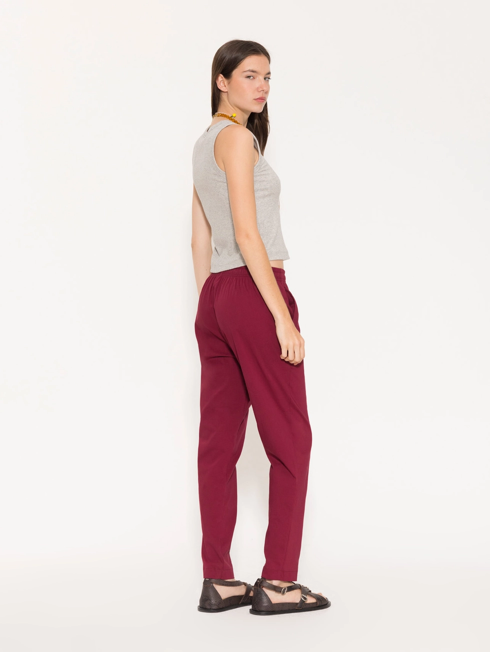 Babucha Inti confeccionada en algodón liviano de textura suave y confortable. Presenta cintura elastizada con cordón ajustable, bolsillos laterales y botamangas levemente entalladas que aportan definición al calce. Su diseño minimalista y relajado la convierte en una prenda versátil, ideal para acompañar looks casuales con un aire sofisticado y fresco.