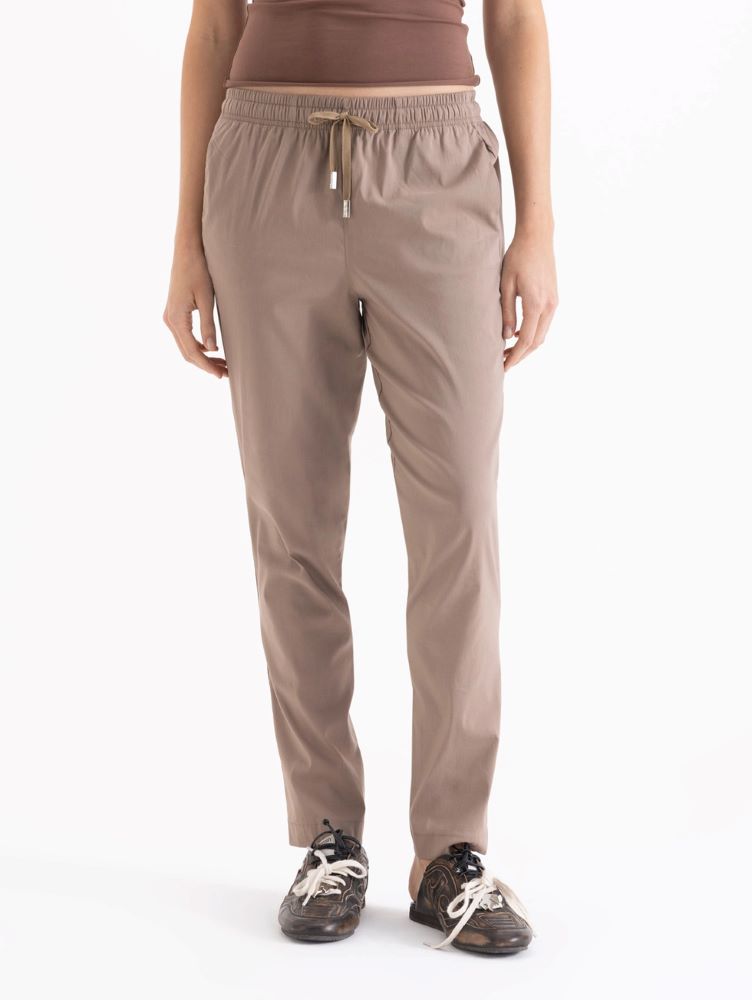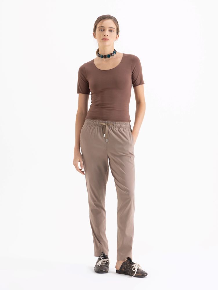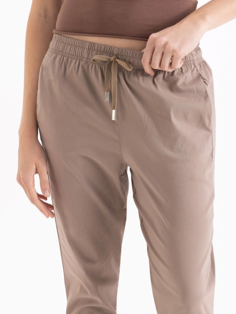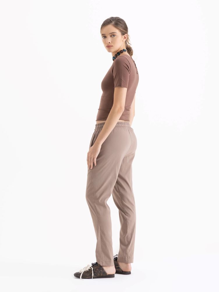 Babucha Inti confeccionada en algodón liviano de textura suave. Presenta cintura elastizada con cordón ajustable, bolsillos laterales y botamangas levemente entalladas que definen el calce. Su diseño relajado combina comodidad y estilo, ideal para un look descontracturado.