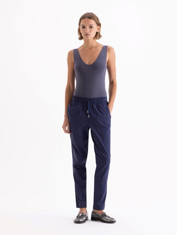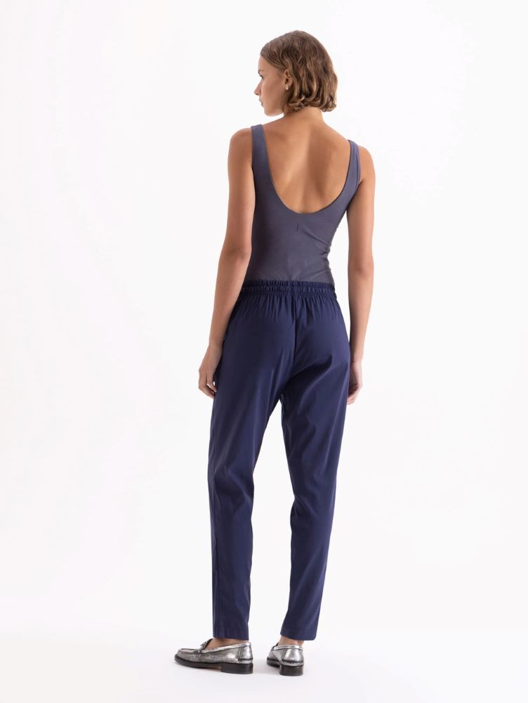 Babucha Inti confeccionada en algodón liviano de textura suave y confortable. Presenta cintura elastizada con cordón ajustable, bolsillos laterales y botamangas levemente entalladas que aportan definición al calce. Su diseño minimalista y relajado la convierte en una prenda versátil, ideal para acompañar looks casuales con un aire sofisticado y fresco.