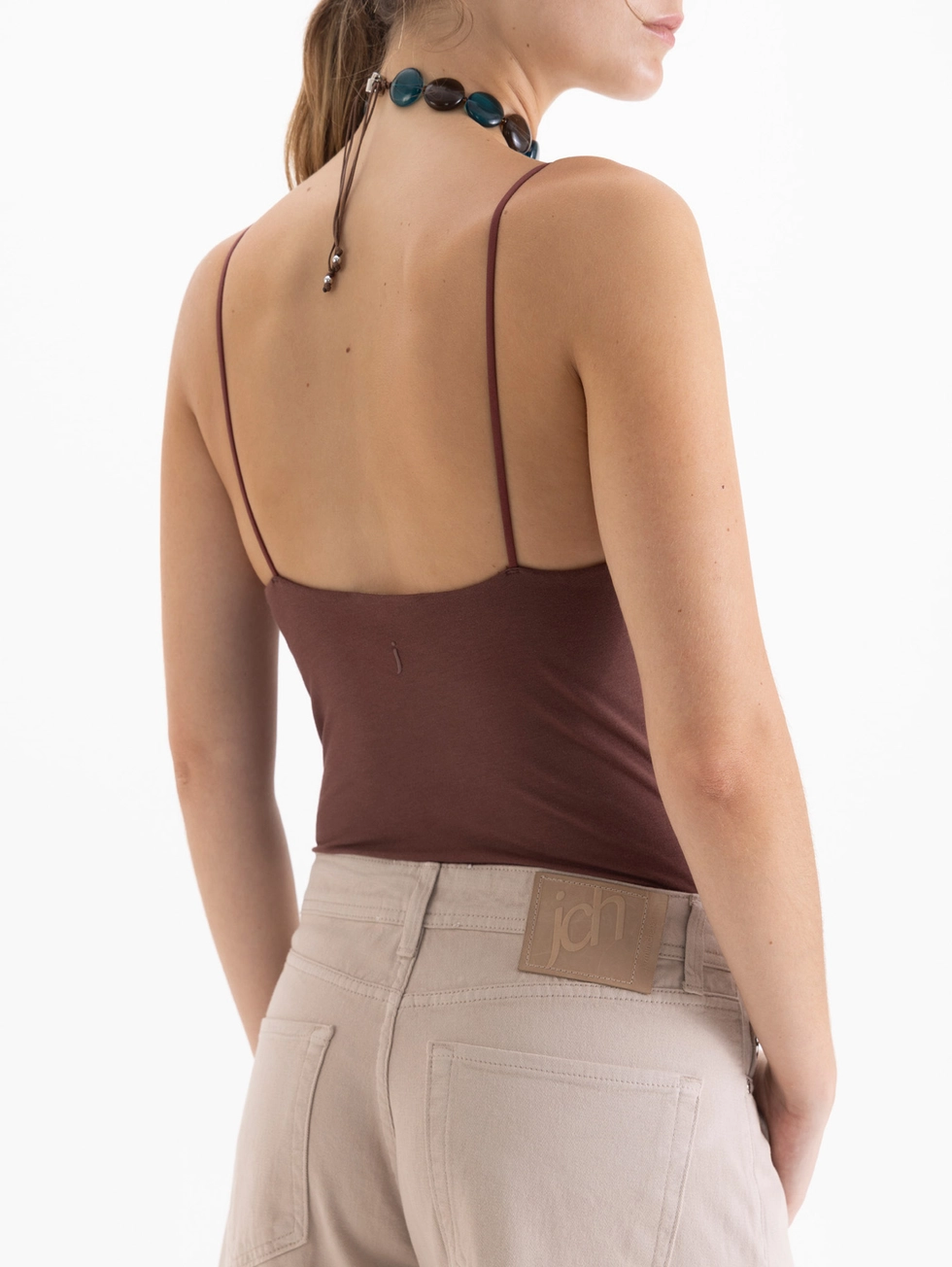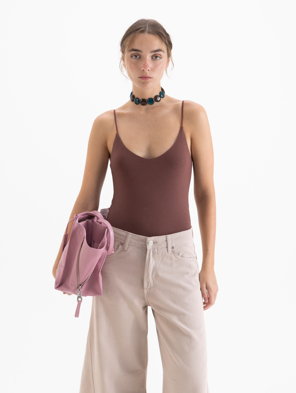 Body Aline confeccionado en punto, tipo musculosa. Es de escote en V y lleva logo 3D en espalda.