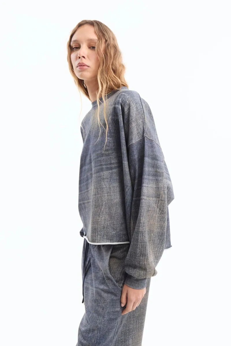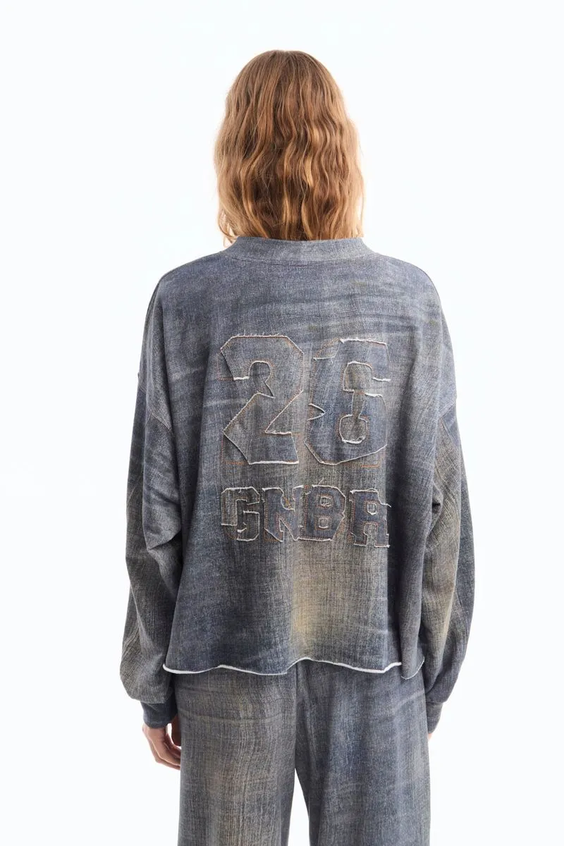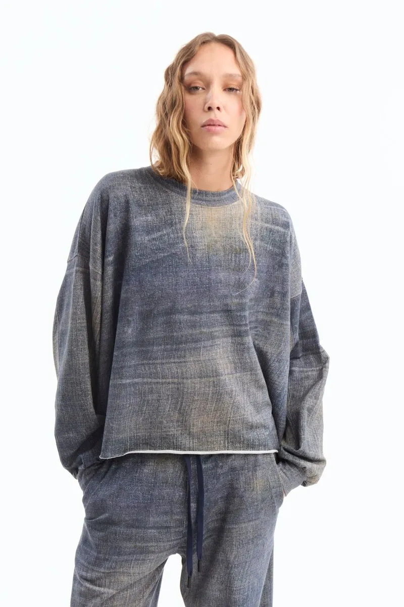 El Buzo Manhattan, de rústico de algodón peruano, es de calce oversize, escote a la base y manga larga ancha con puños. Presenta ruedo con terminación al corte para un efecto descontracturado. Lleva parche de tela bordado en espalda. Este artículo lleva impresión digital en prenda simil denim, lo que le aporta un look jeanero sin perder comfort. Ideal para un look canchero sin perder comodidad. Perfecto para combinar en conjunto con el Pantalón Bill.