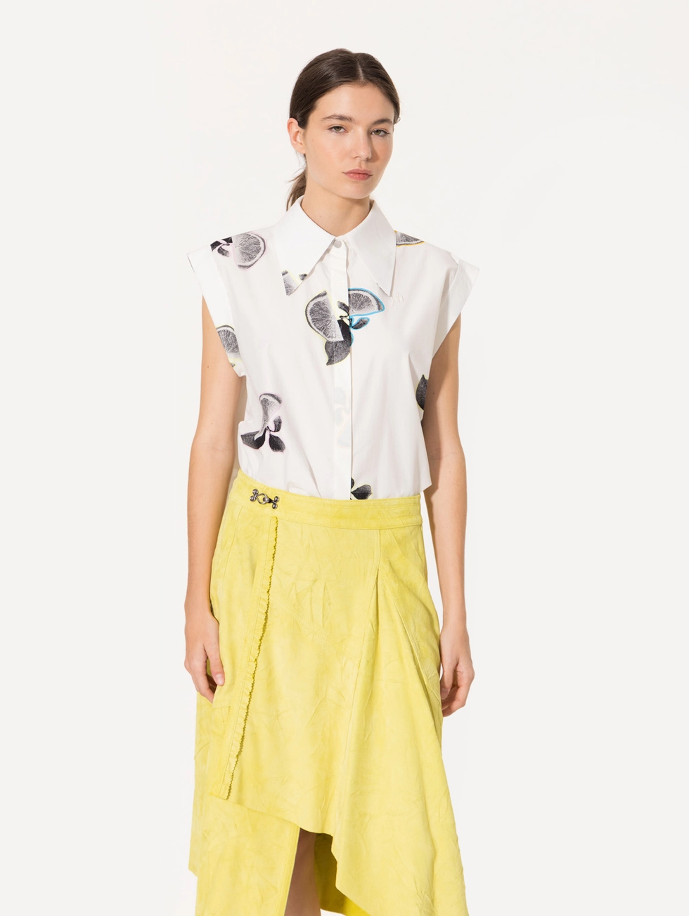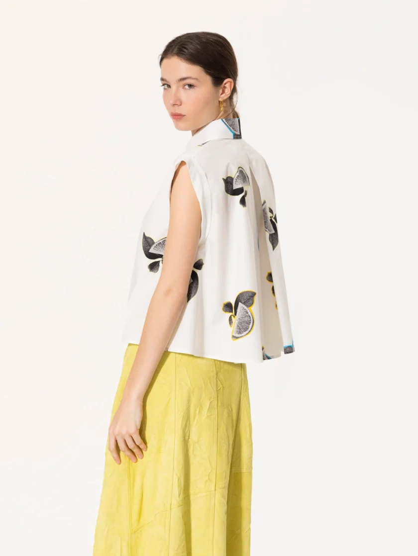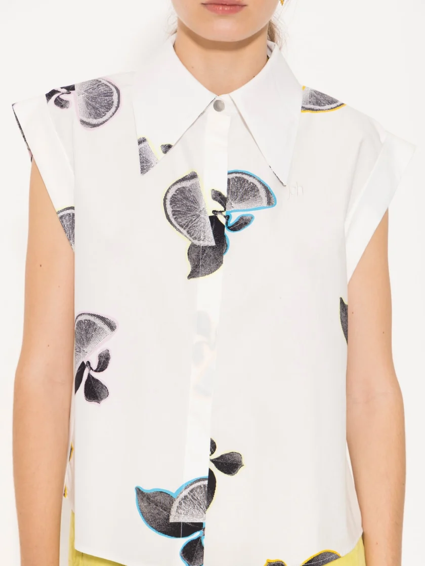 Camisa Fresh confeccionada en poplin paper con estampa exclusiva de limones JCH. Presenta cartera oculta con botones de pasta al tono, pie de cuello con broche níquel y mangas japonesas. El fit amplio se logra gracias a la tabla encontrada en la espalda.