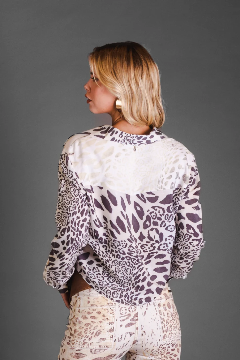 La Camisa Nebot redefine el animal print con un diseño de impacto y silueta relajada. Confeccionada en una tela liviana y suave, combina estampados en contraste que le dan un aire moderno y salvaje.