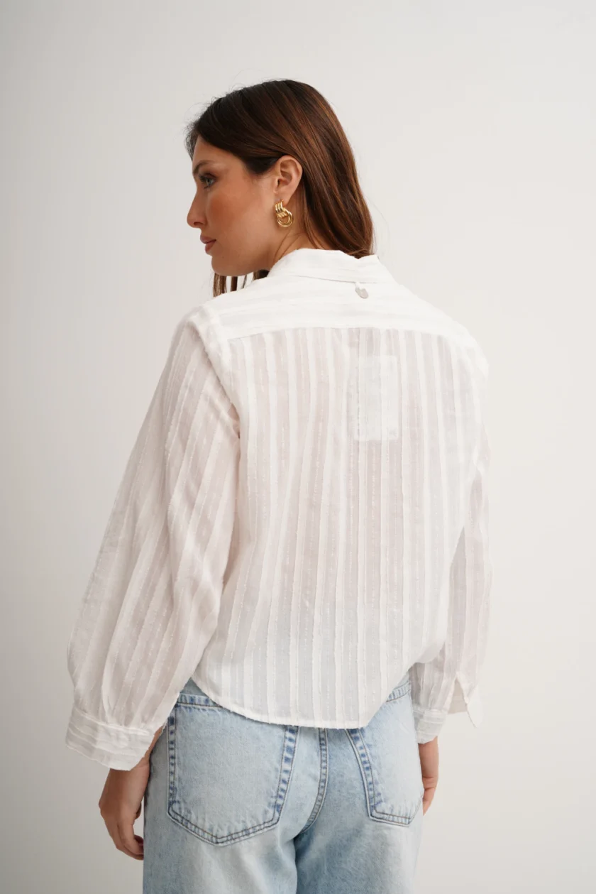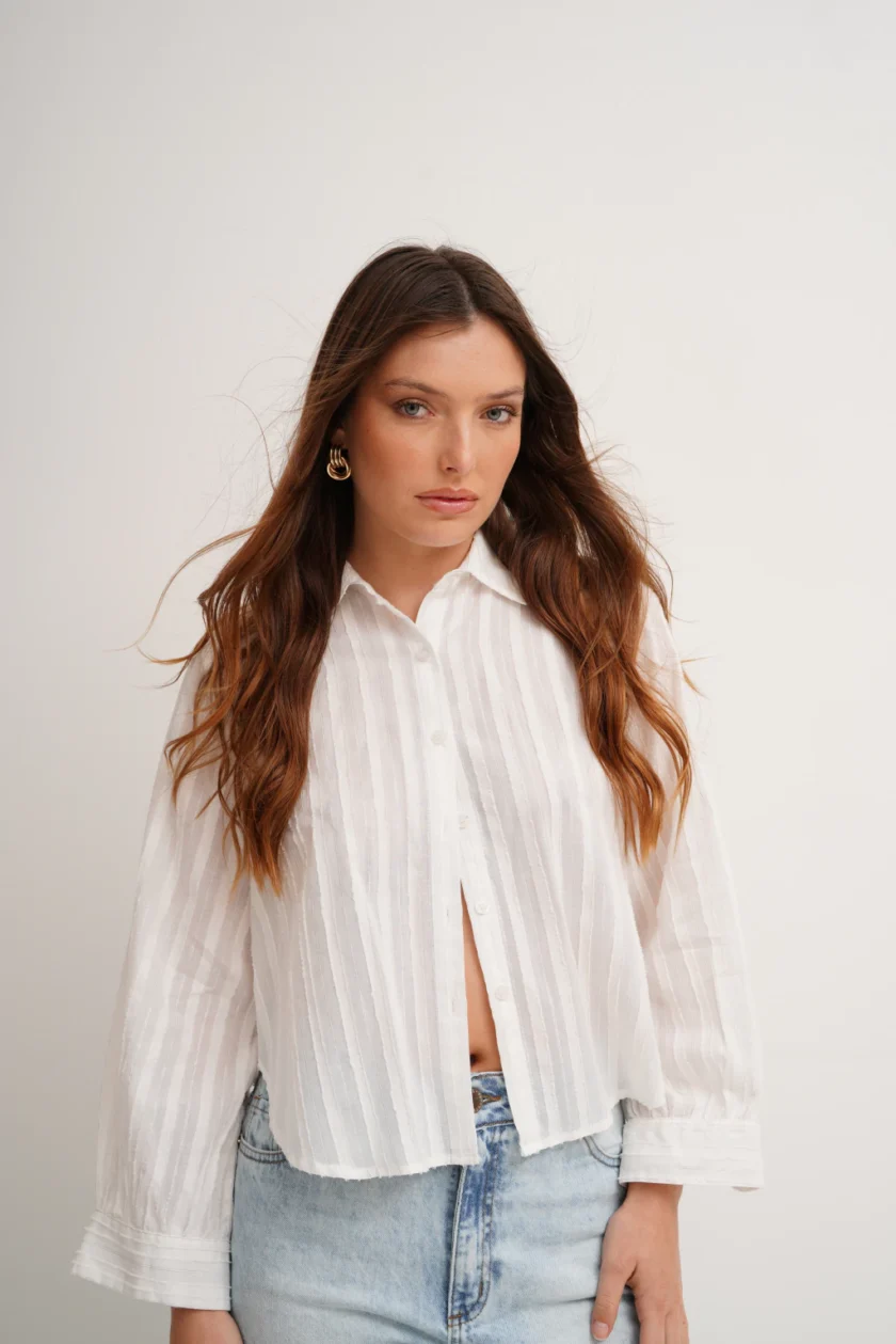 Camisa de fit clásico con mangas globo y cartera con botones al frente.