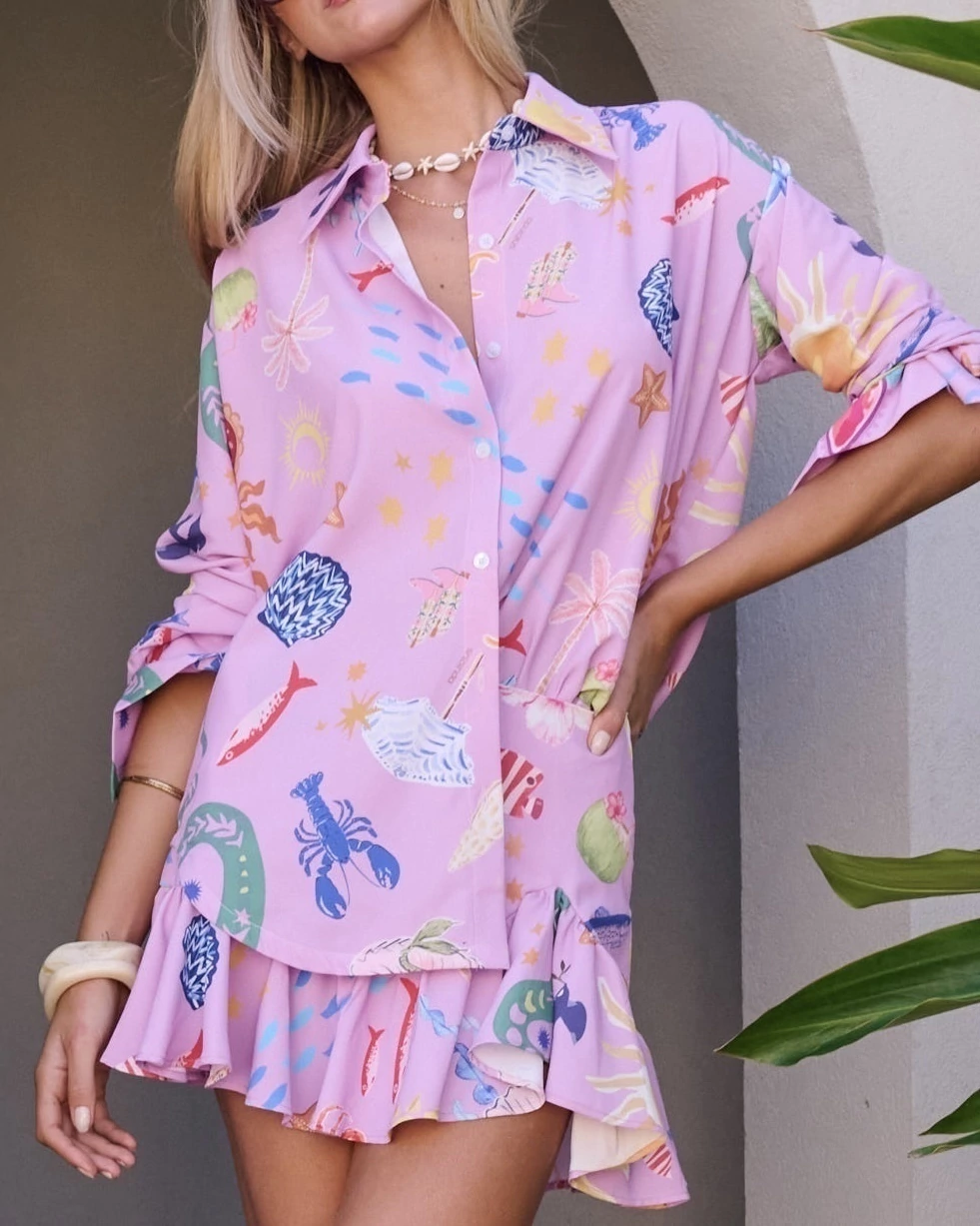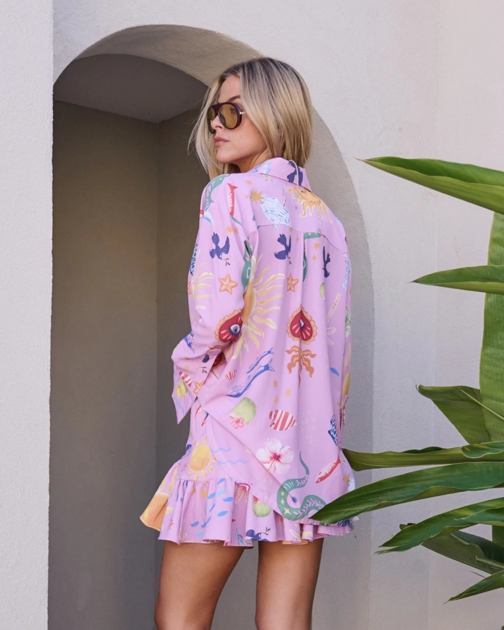 Camisa clásica de manga larga con estampa exclusiva desarrollada por Shibinda. Presenta cartera frontal con botones personalizados y canesú en la espalda que aporta mejor estructura y caída.