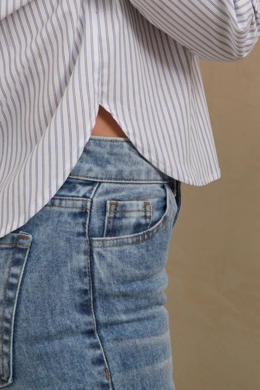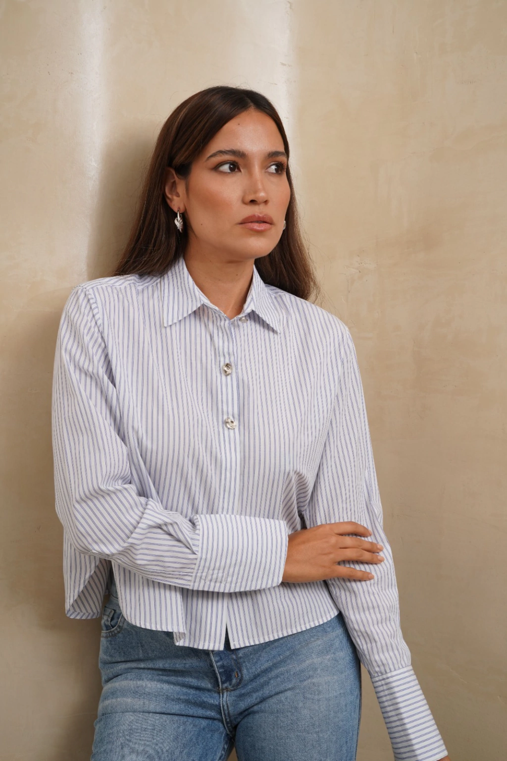 Camisa de fit clásico con botones ocultos y botones superiores diferenciados. Confeccionada en poplin de algodón rayado.
