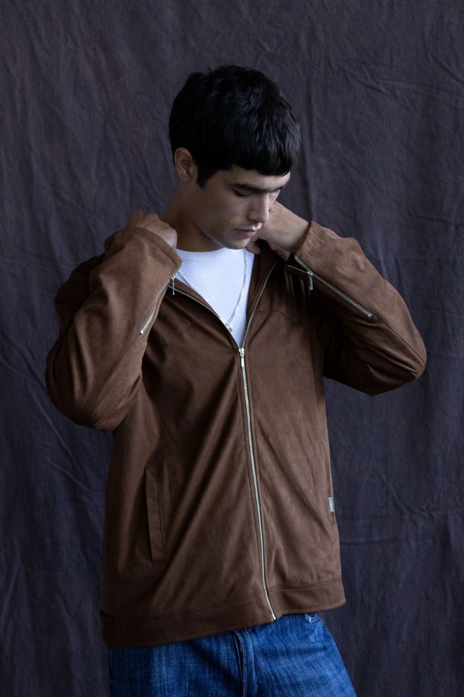 Presentamos la Campera Charlie. Confeccionada en gamuza súper suave elastizada, con forrería en jersey 16/1 de algodón, esta pieza de calce regular ofrece estructura y confort. De inspiración cowboy, destaca por una línea de hombros definida y canesú delantero y trasero. Incorpora cierres metálicos en las mangas y una barra de metal en el bolsillo con el logo de Harvey.