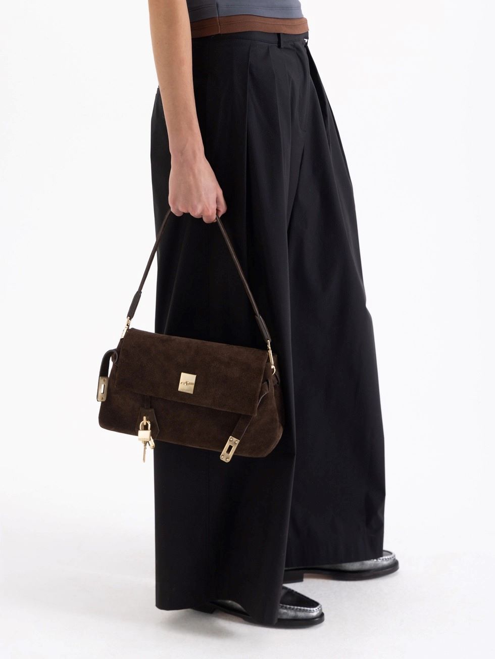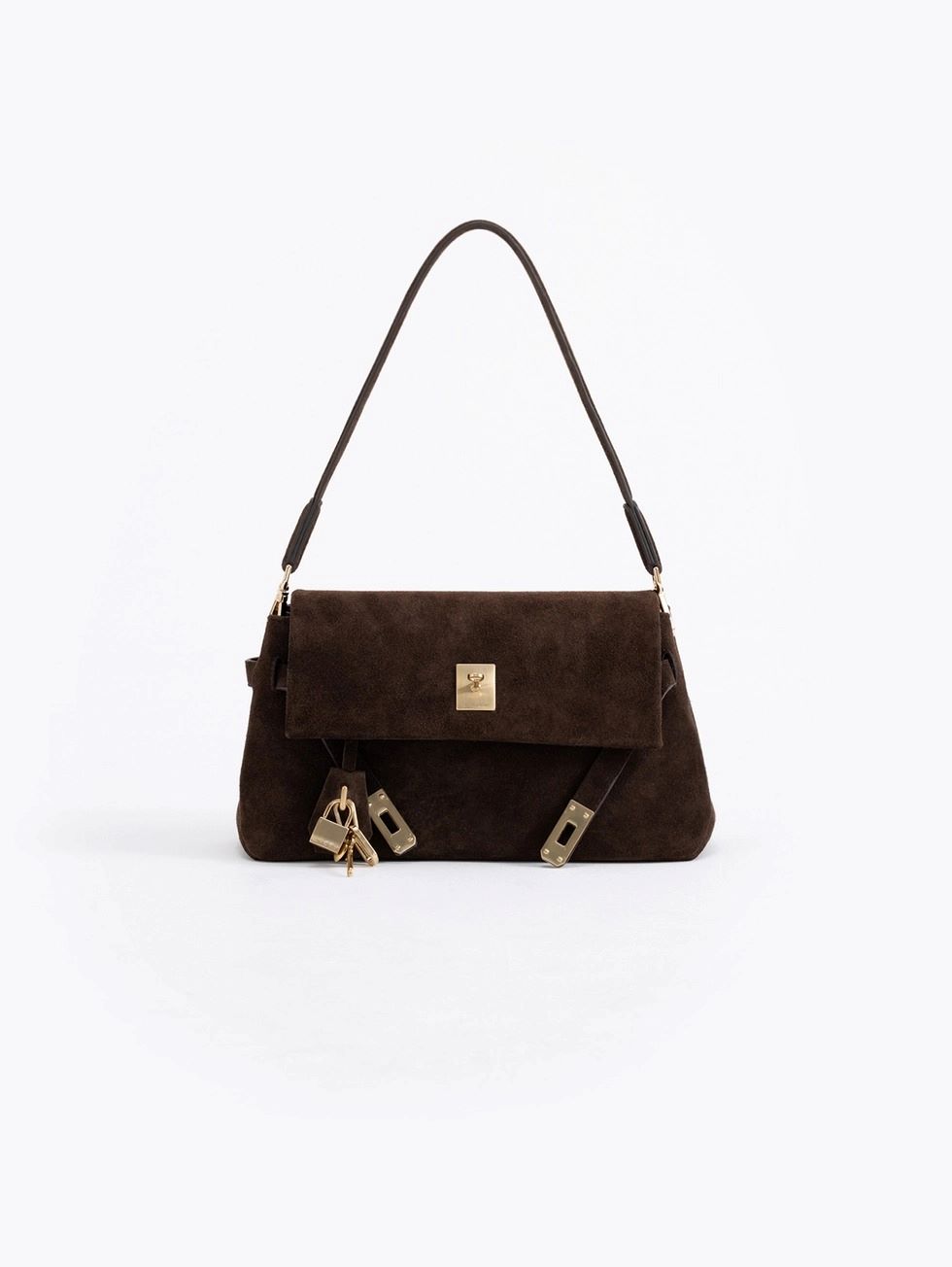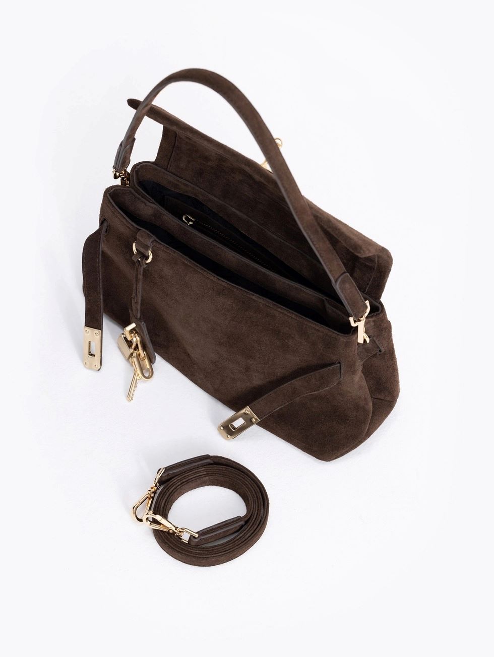 Cartera Audrey Mediana realizada en cuero descarne, su acceso es mediante un torniquete metálico. En su interior contiene un bolsillo con cierre que aporta mayor comodidad de guardado. Lleva detalle de llavero colgante.
