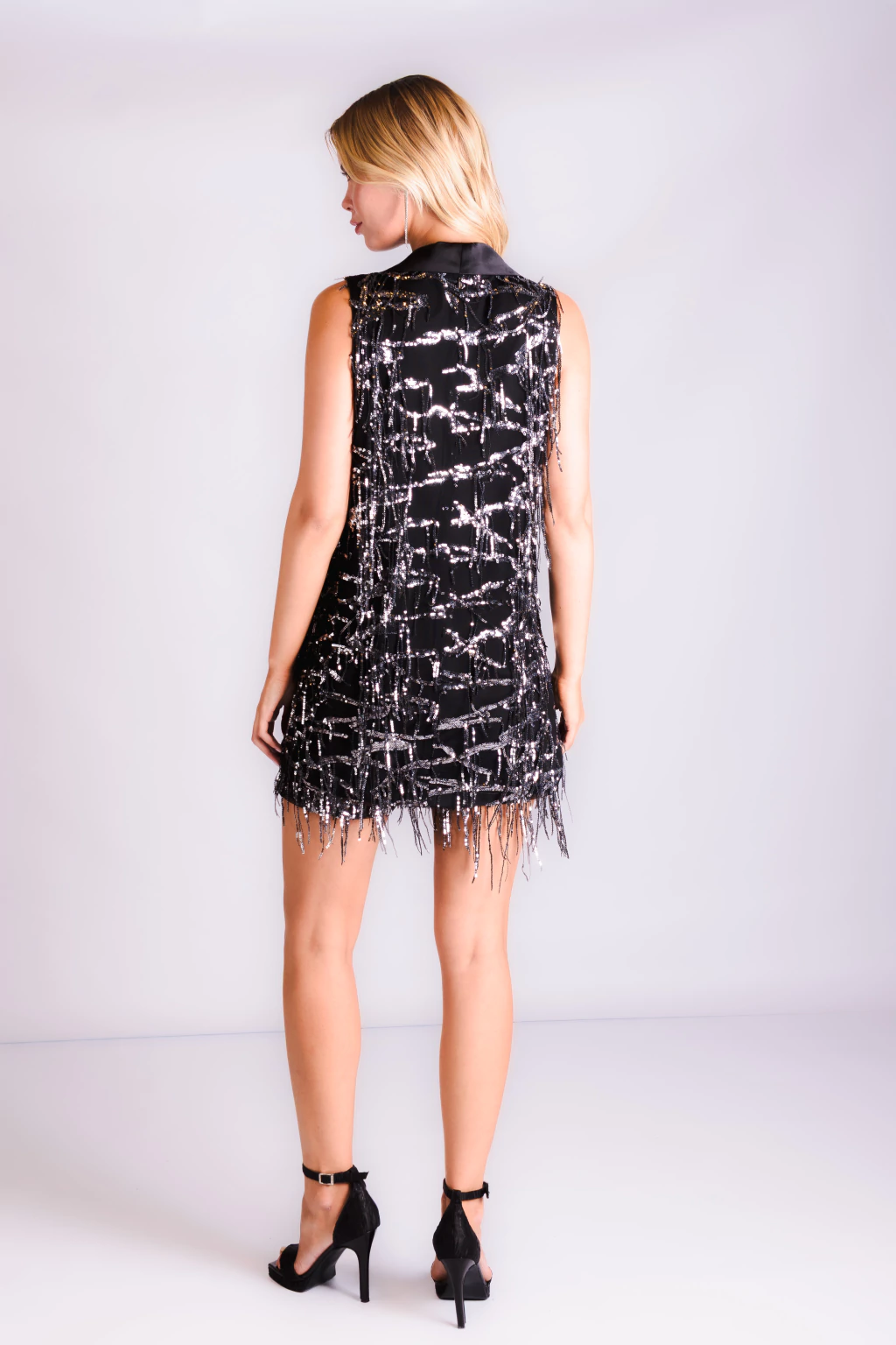 Brillo y elegancia en su versión más audaz. El Josep combina corte sastrero con flecos de lentejuelas, creando un contraste irresistible entre lo clásico y lo provocador. Perfecto para dominar la noche con estilo.