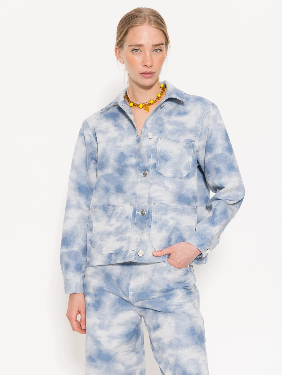 Chaqueta Heaven de largo a la cadera con bolsillos plaqué en el frente. Su acceso es mediante cartera frontal con botones metálicos. Lleva detalle de remaches con brillos en el canesú de espalda.
