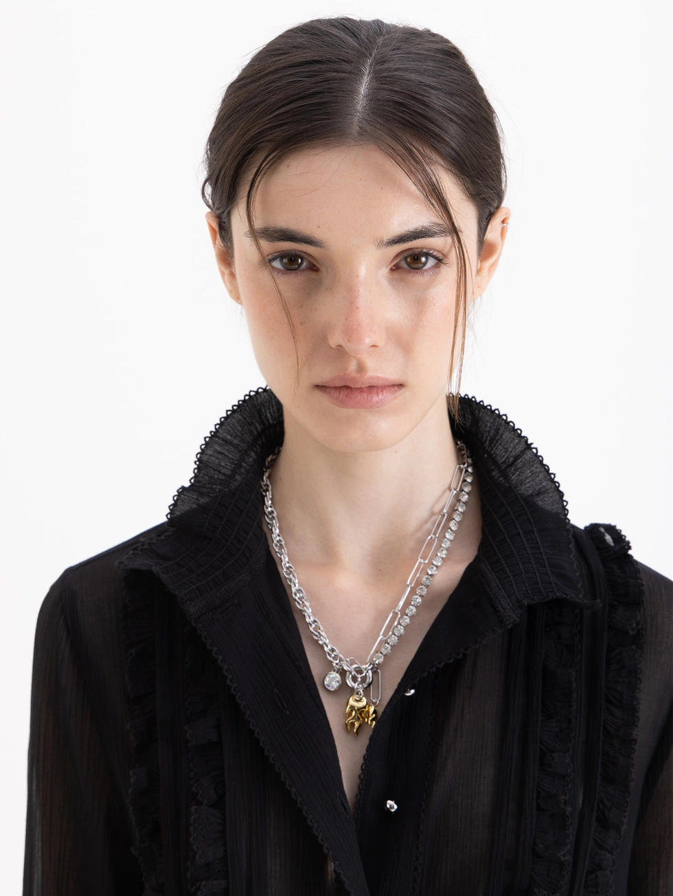 Choker Fire confeccionado en combinación de distintas cadenas, con posibilidad de regular su largo. Lleva detalle de charms Fire.