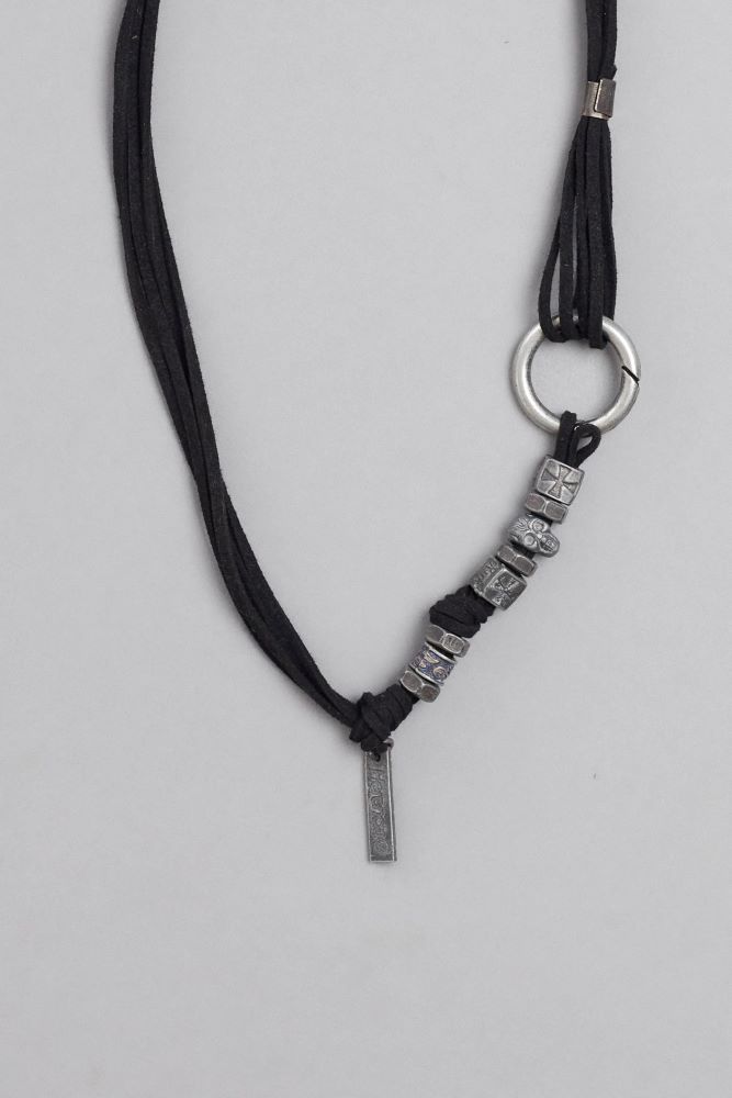 El collar collar lasso esta compuesto en tanzas de gamuza negra y cuenta con dijes personalizados y mosquetón. Largo 27cm.
