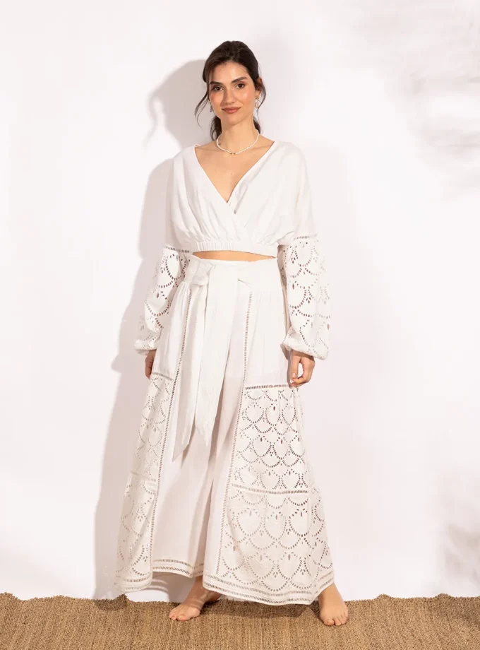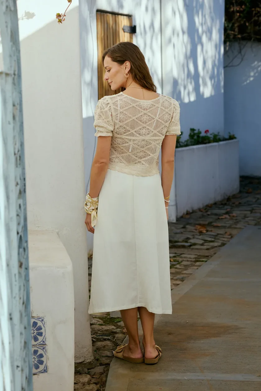 Falda 3/4, de calce recto, con bolsillos en los laterales. Acceso por medio del elástico.
