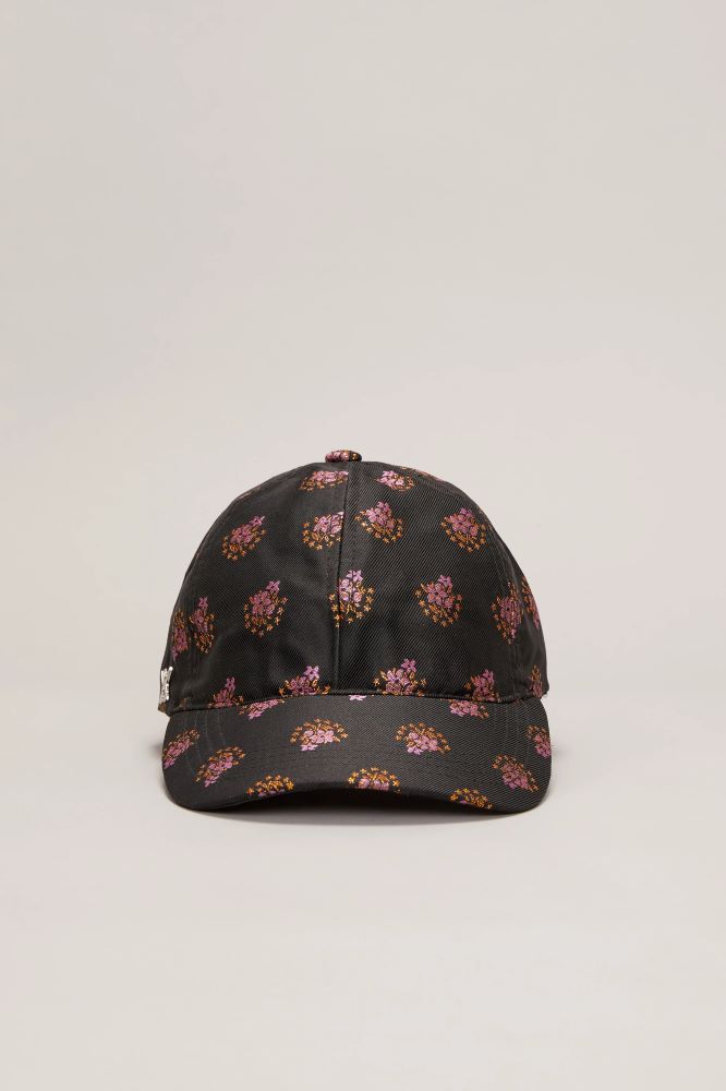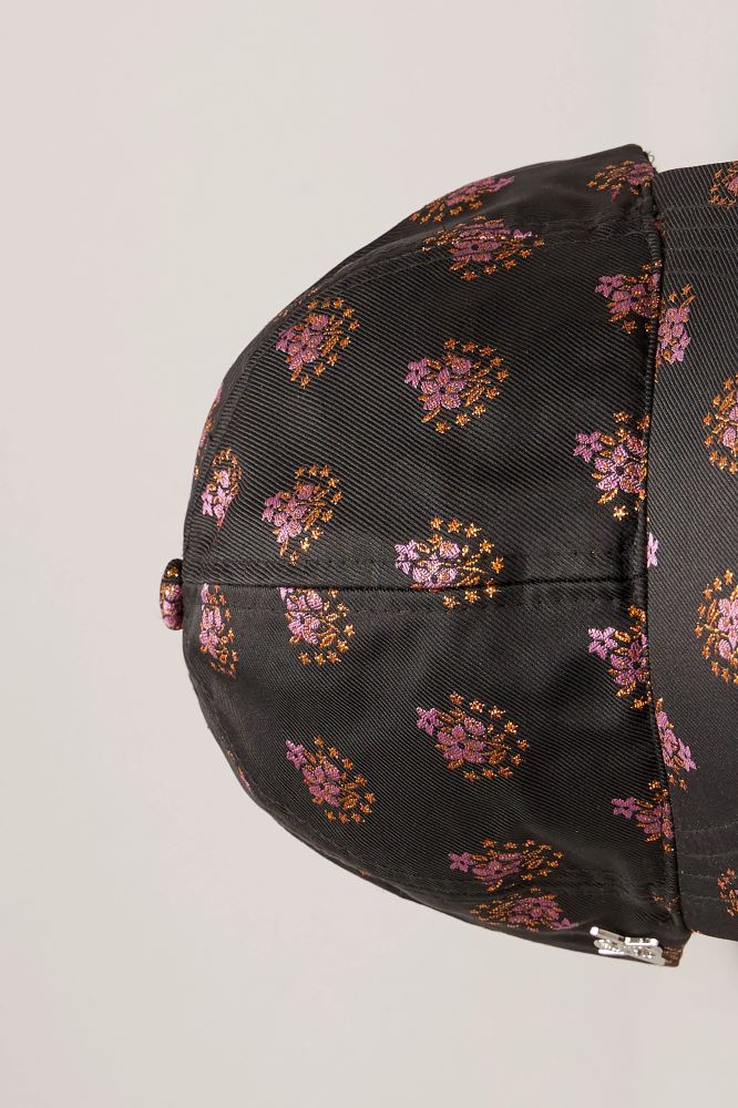 La gorra Liberty, está confeccionada en brocato con lurex, con estámpa exclusiva de está colección. Lleva aplique metálico en lateral, con isologo de la marca color níquel. Tiene acceso trasero ajustable