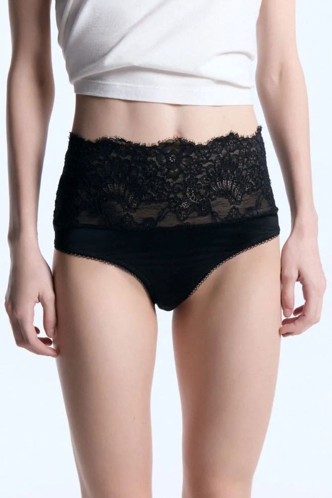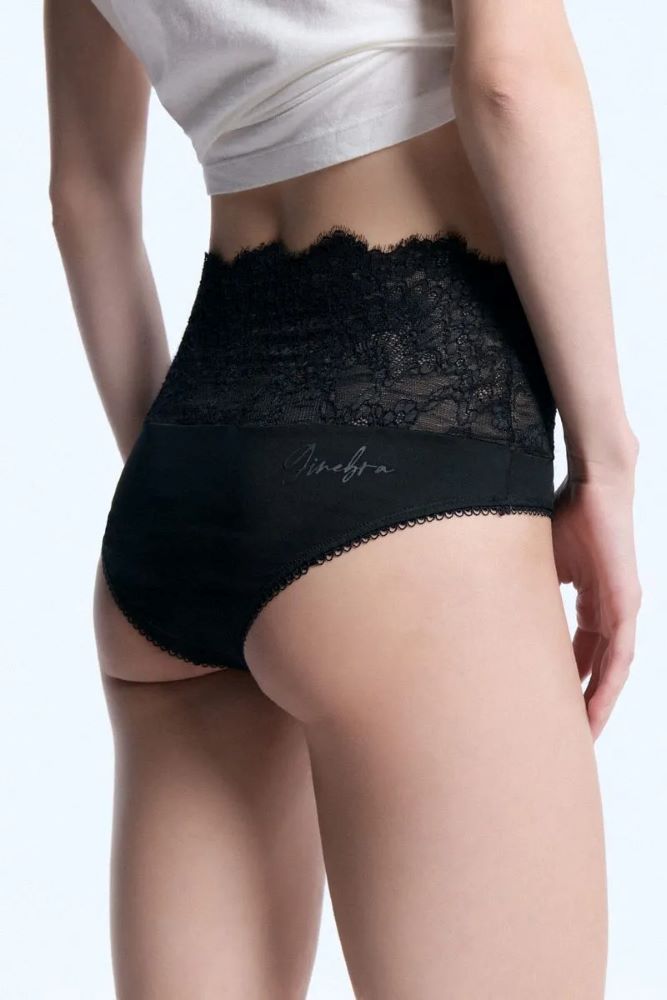 Culotte de lycra con terminación de encaje. Calce tiro medio/alto. Pensado para usar debajo de jeans, pantalones de gabardina, pantalones de cuero y dejar sobresalir el encaje como detalle sexy. También para usar debajo de vestidos como viso.