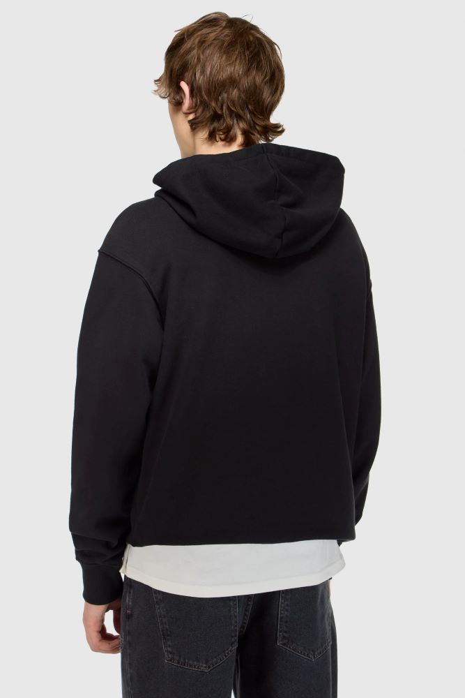 El Hoodie Doggy Dark de calce oversize con capucha y bolsillo canguro tiene estampa en delantero. Además lleva cocodrilo metálico con logo en la boca de bolsillo. Está confeccionado en rústico de algodón con puños de morley al tono. Posee proceso de lavado suavizado. Ignacio está usando en la prenda superior un talle M y en la prenda inferior un talle L/34. Sus medidas son: Altura 1. 83m. Pecho 91 cm. Cintura 74cm. Cadera 94cm