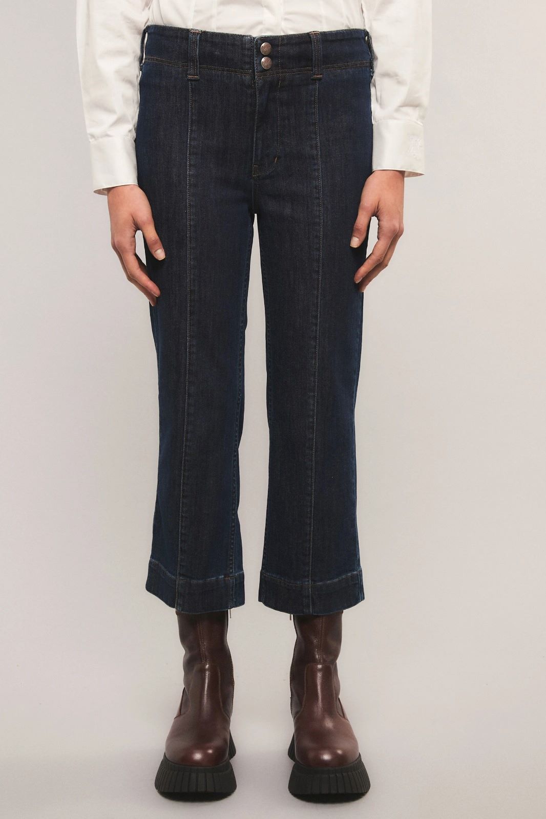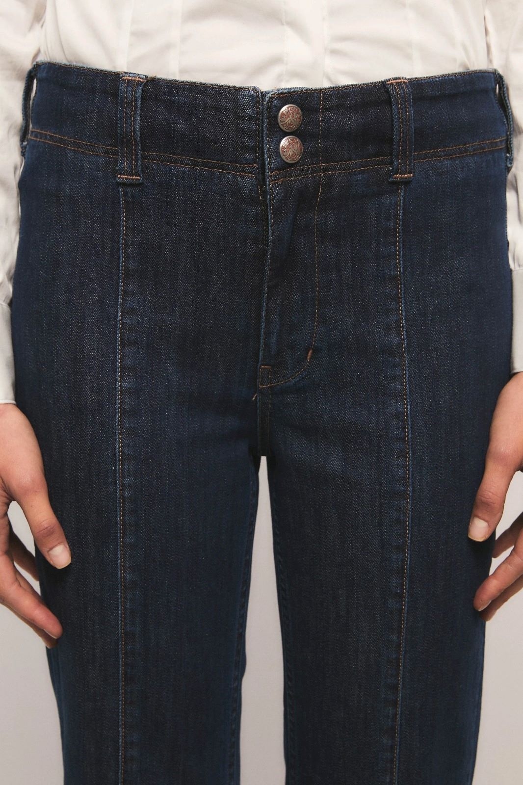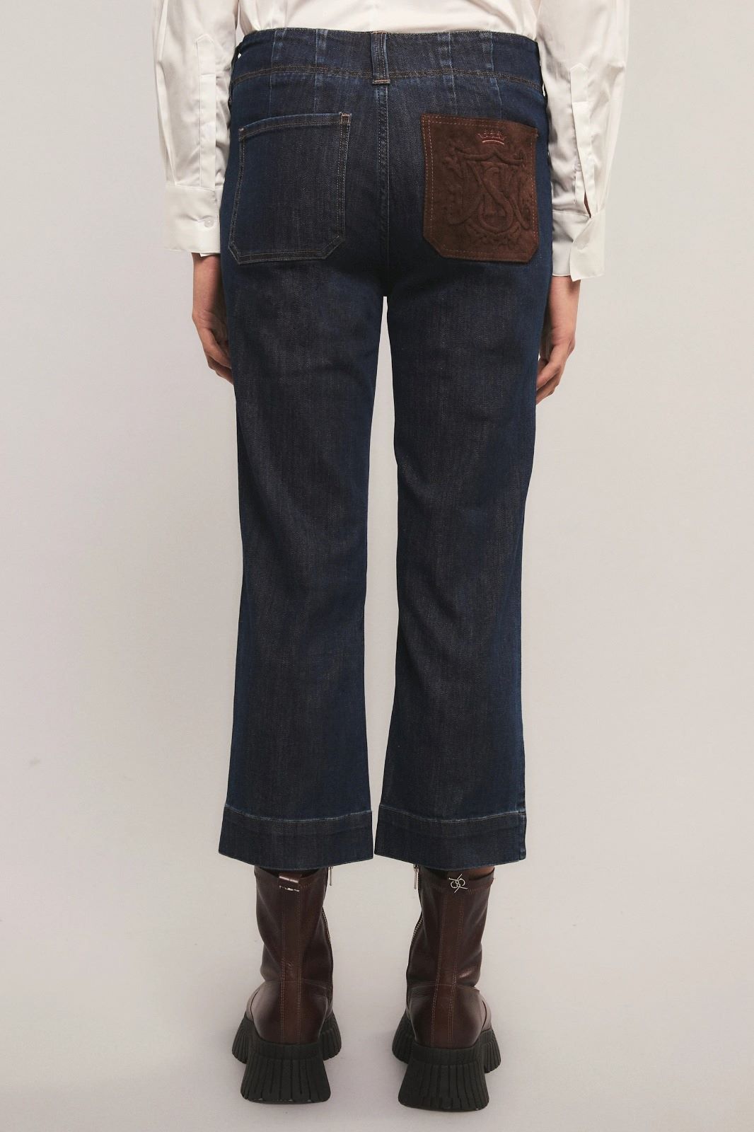 El Jeans Luxor de calce slim y largo hasta el tobillo, con recortes en la pierna delantera y pinzas en la parte trasera que aportan definición a la silueta. Confeccionado en tejido de alta performance, intervenido con un lavado artesanal que realza un azul intenso y vibrante. Se complementa con de cuero que lleva gofrado la versión renovada del logo insignia. Inés está usando en la prenda superior un talle S, y en la prenda inferior un talle S/26. Sus medidas son: Altura 1. 75 m. Busto 75 cm. Cintura 65cm. Cadera 90cm.