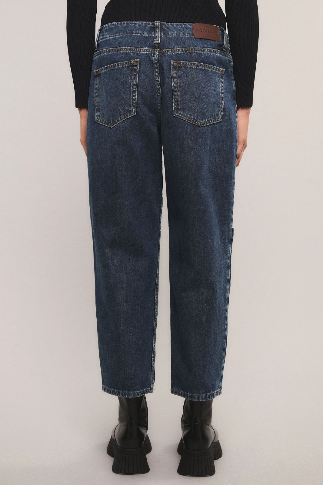 El Jean Richard Tapered Leg redefine el denim con un calce moderno: amplio en caderas y muslos, se afina con naturalidad hacia el tobillo logrando una silueta estilizada. Confeccionado en 100% algodón, su lavado artesanal potencia la riqueza del índigo en un azul vibrante. Como detalle diferencial, incorpora un recorte delantero con bolsillos cargo que aportan carácter y funcionalidad. Inés está usando en la prenda superior un talle S, y en la prenda inferior un talle S/26. Sus medidas son: Altura 1. 75 m. Busto 75 cm. Cintura 65cm. Cadera 90cm.