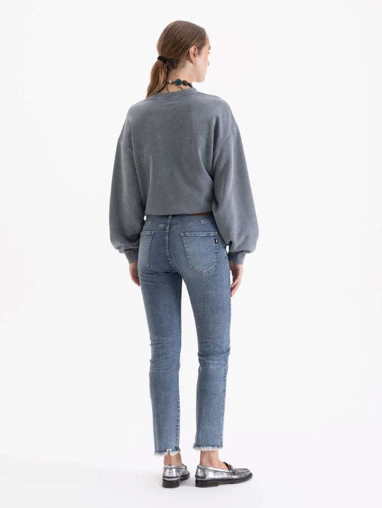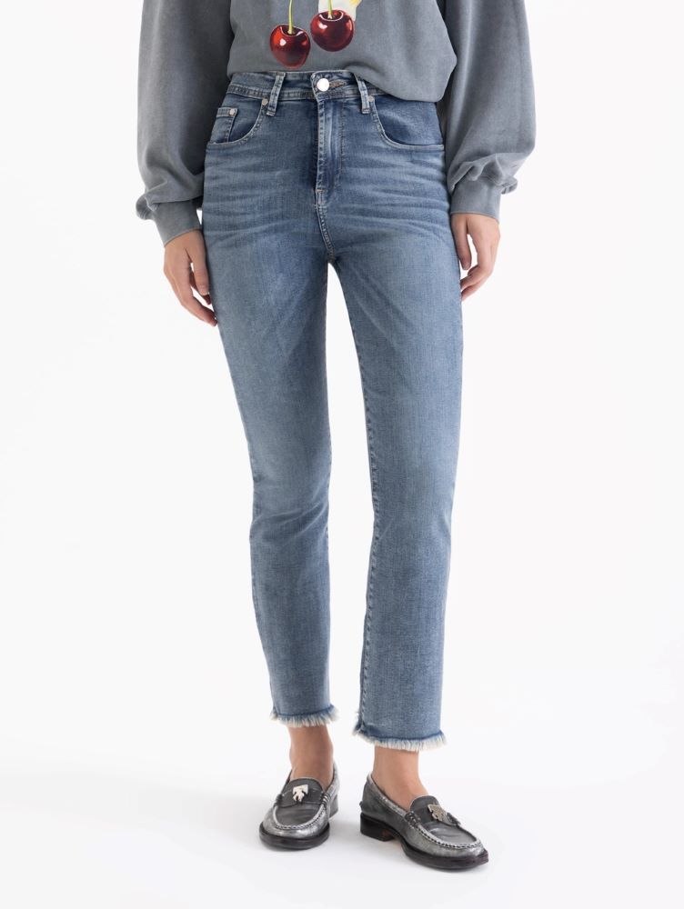 Jeans Richie Summer de fit cropped y tiro medio, con largo por encima del tobillo. De calce ajustado, se completa con una botamanga recta y desflecada.