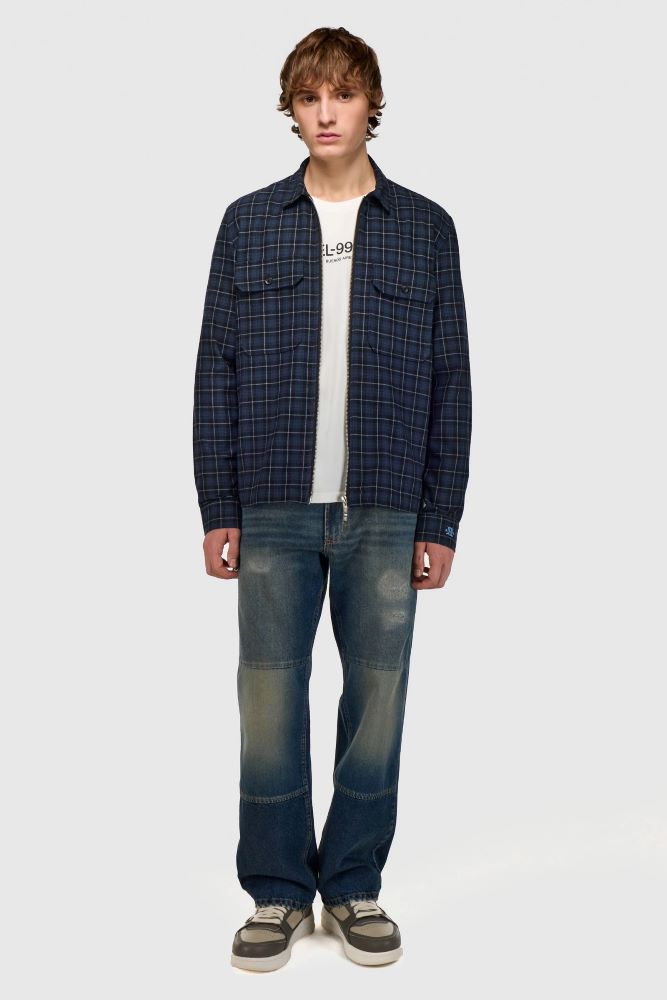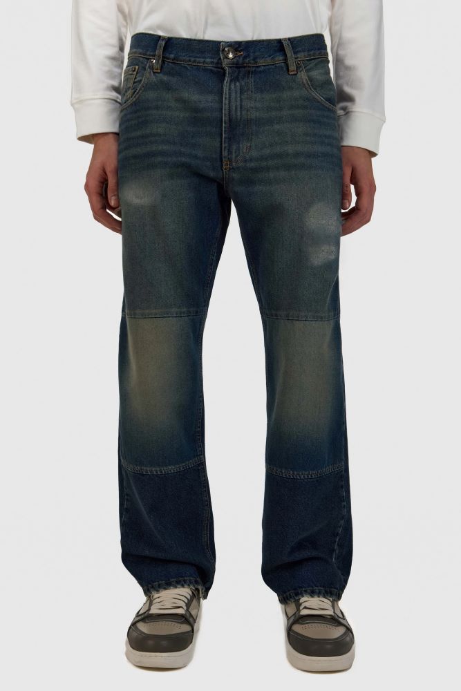 El Jeans Slayer Patches Label tiene un calce recto con tiro medio. Está confeccionado en dos tejidos 100% algodón. Tiene un tono mid blue matizado con una reserva de color a la altura de las rodillas, generado mediante un proceso de lavado que desgasta la prenda. Sugerimos llevar un talle menos de lo habitual. Alina está usando en la prenda superior un talle S, y en la prenda inferior un talle S/26. Sus medidas son: Altura 1. 79 m. Busto 78 cm. Cintura 60cm. Cadera 88cm. Ignacio está usando en la prenda superior un talle M y en la prenda inferior un talle L/34. Sus medidas son: Altura 1. 83m. Pecho 91 cm. Cintura 74cm. Cadera 94cm.