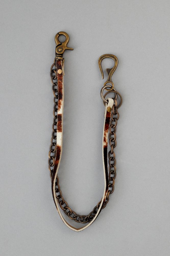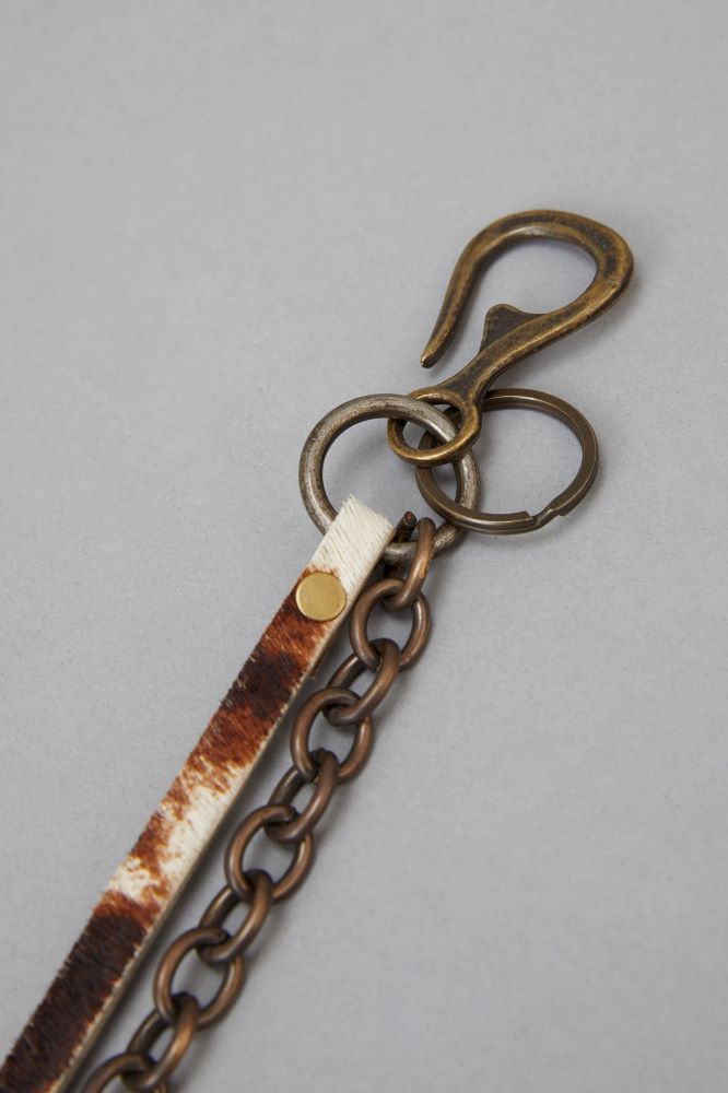 El llavero Cow Bronce esta compuesto de una cadena en baño de bronce y otra de pelo simil vaca. 25 cm de largo.