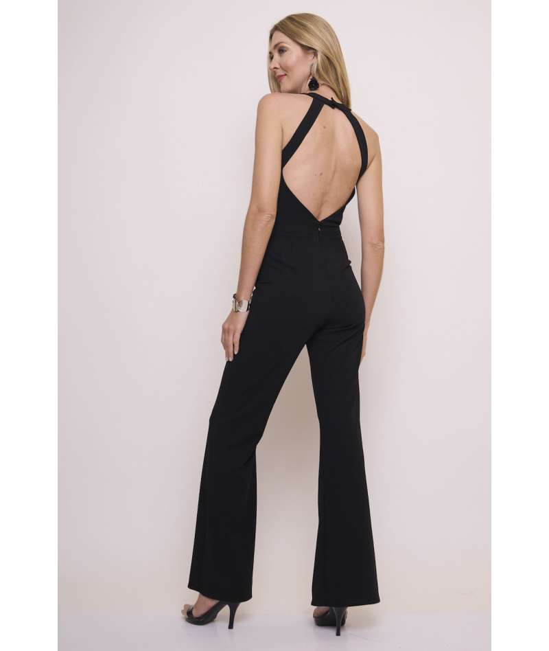 Mono de crepe elastizado , pantalón recto y escote hulter con espalda descubierta
