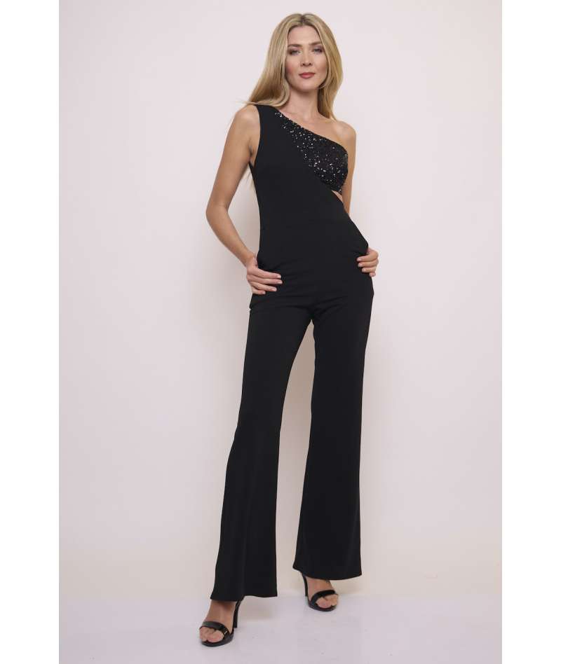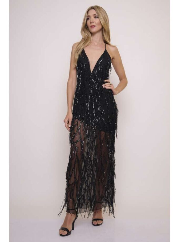 Mono verano de crepe elastizado y paillette con cut out