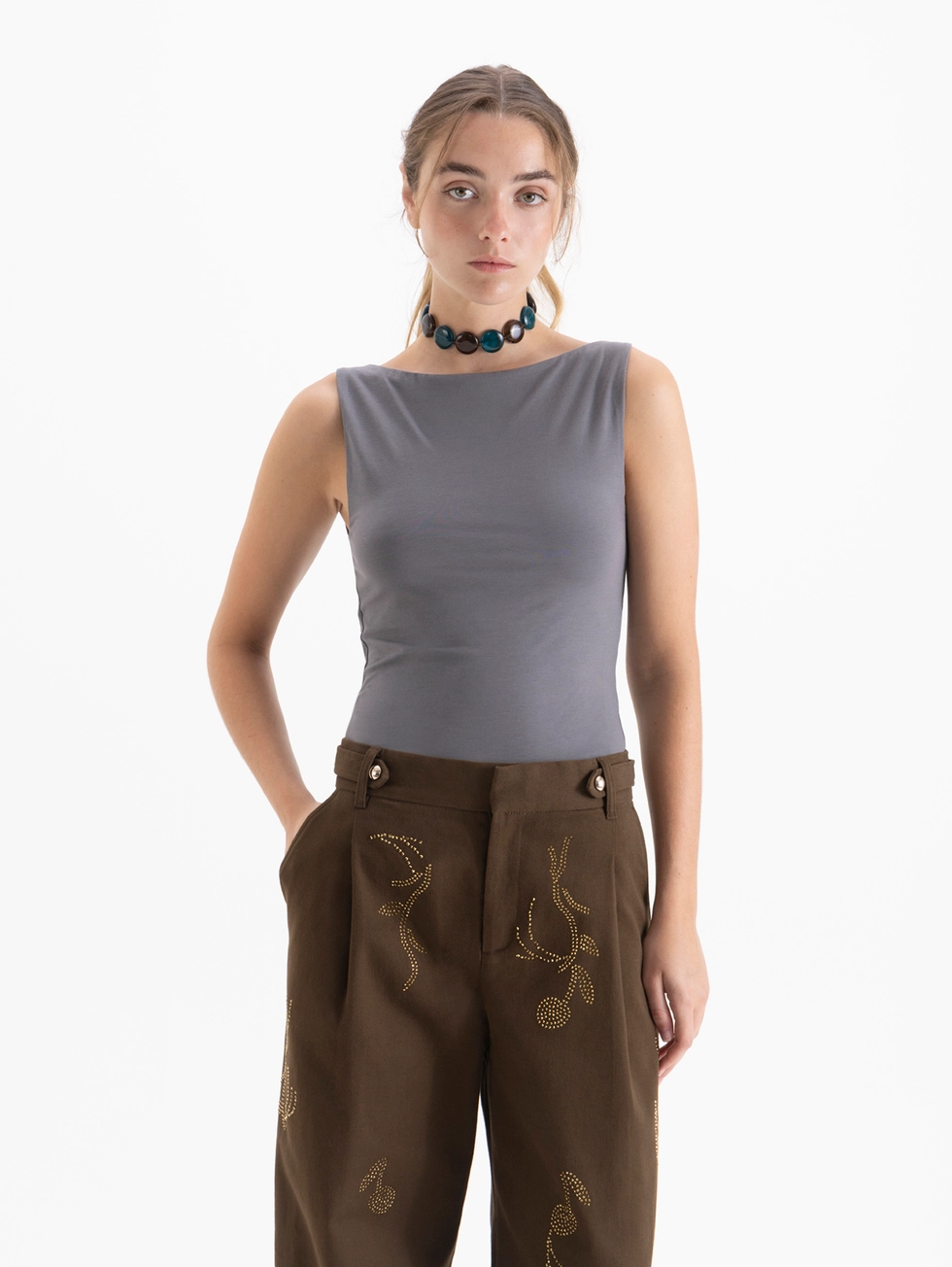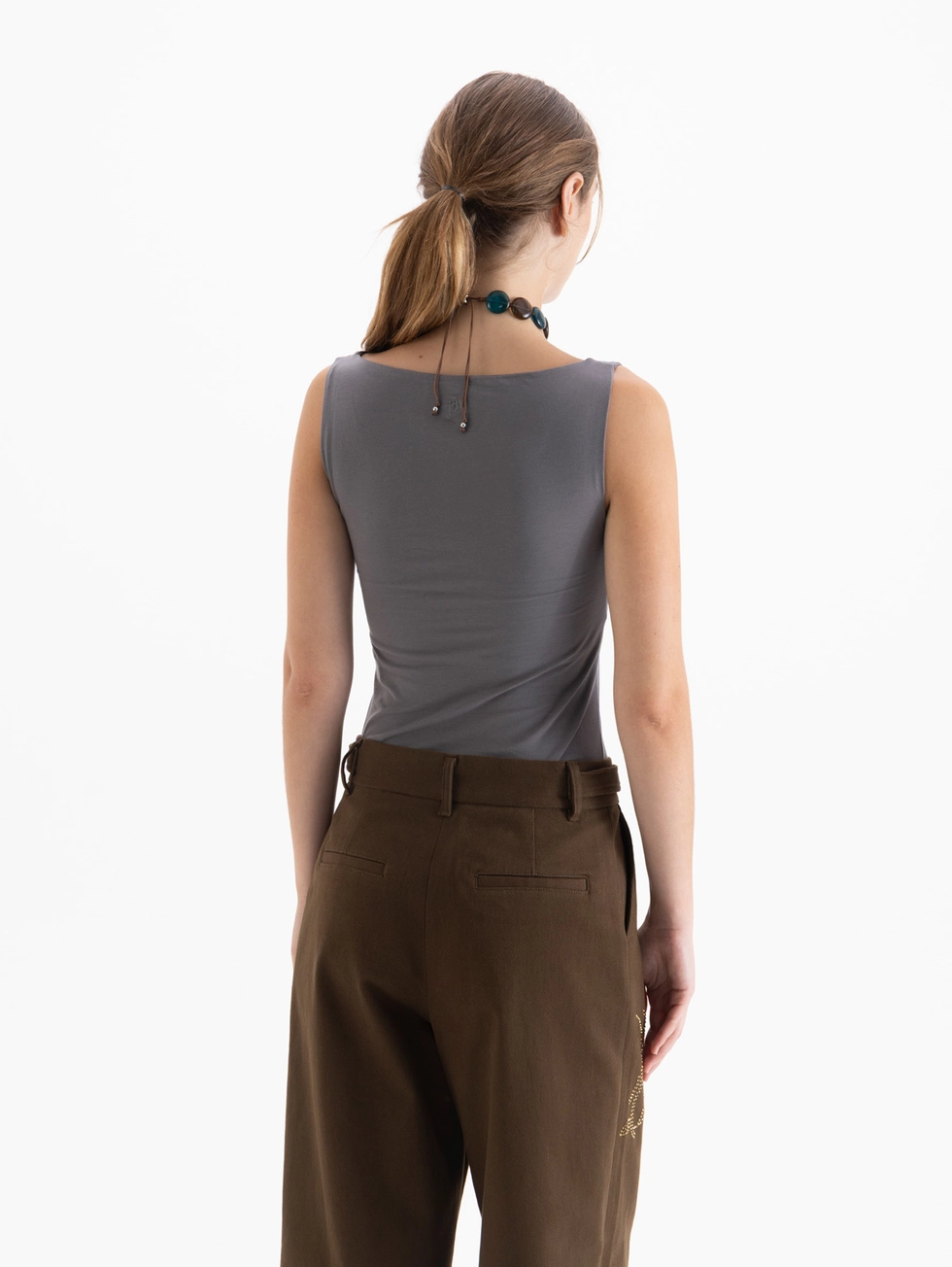 Musculosa Denver confeccionada en algodón pima orgánico, de fit al cuerpo y larga al la primera cadera. Lleva logo JCH bordado en la espalda.