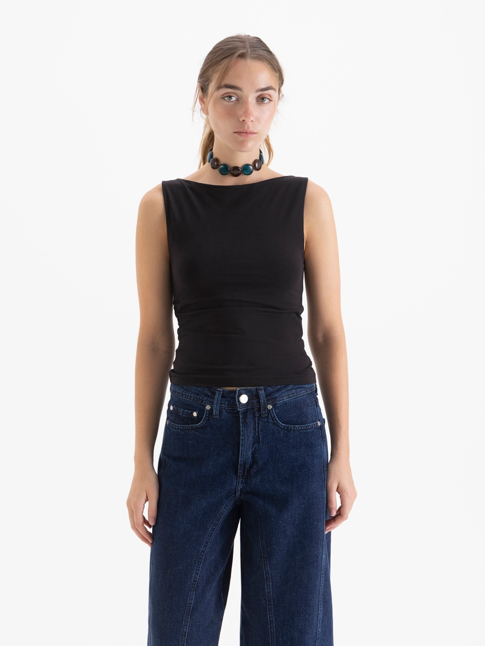 Musculosa Denver confeccionada en algodón pima orgánico, de fit al cuerpo y larga al la primera cadera. Lleva logo JCH bordado en la espalda.