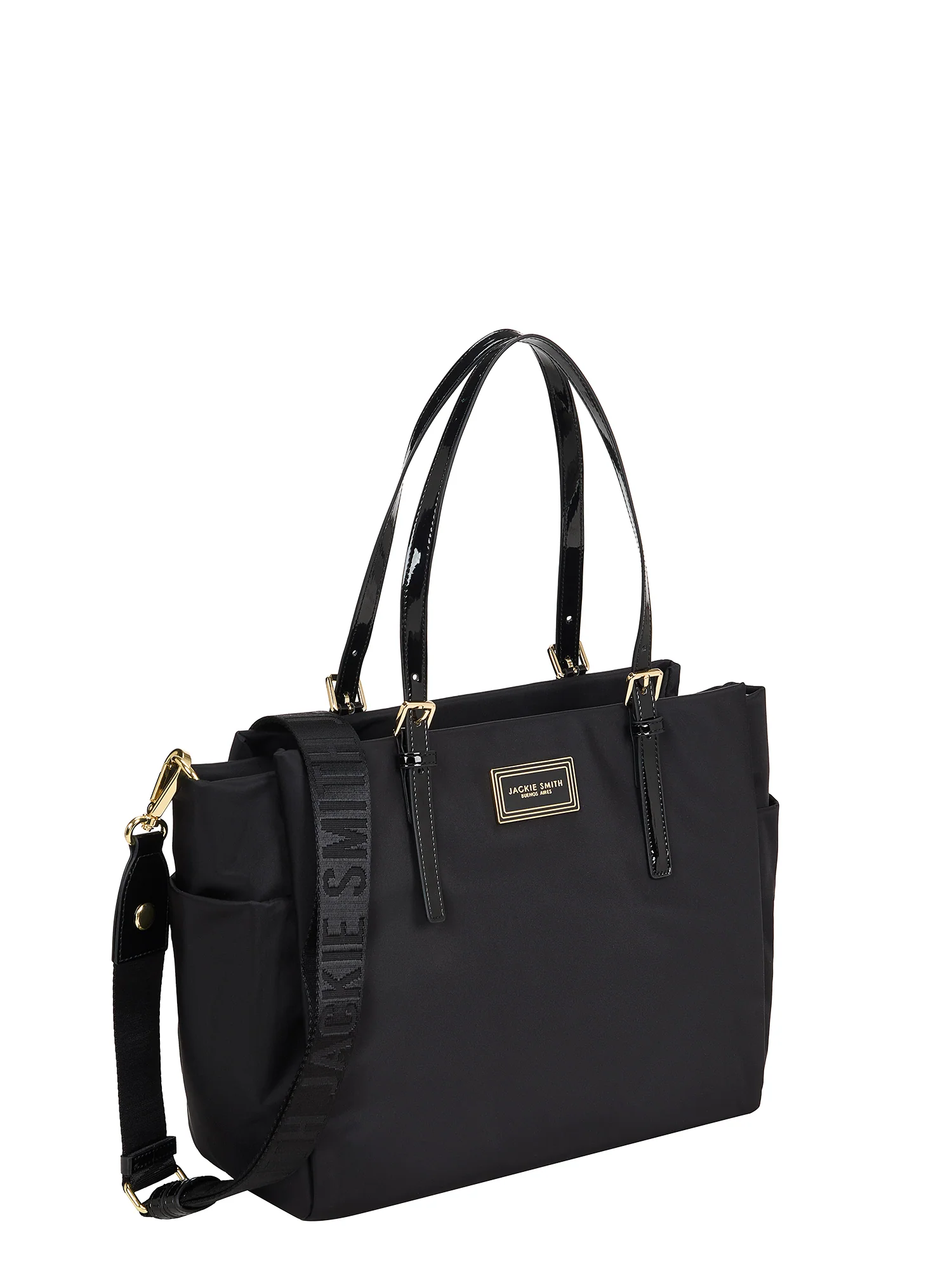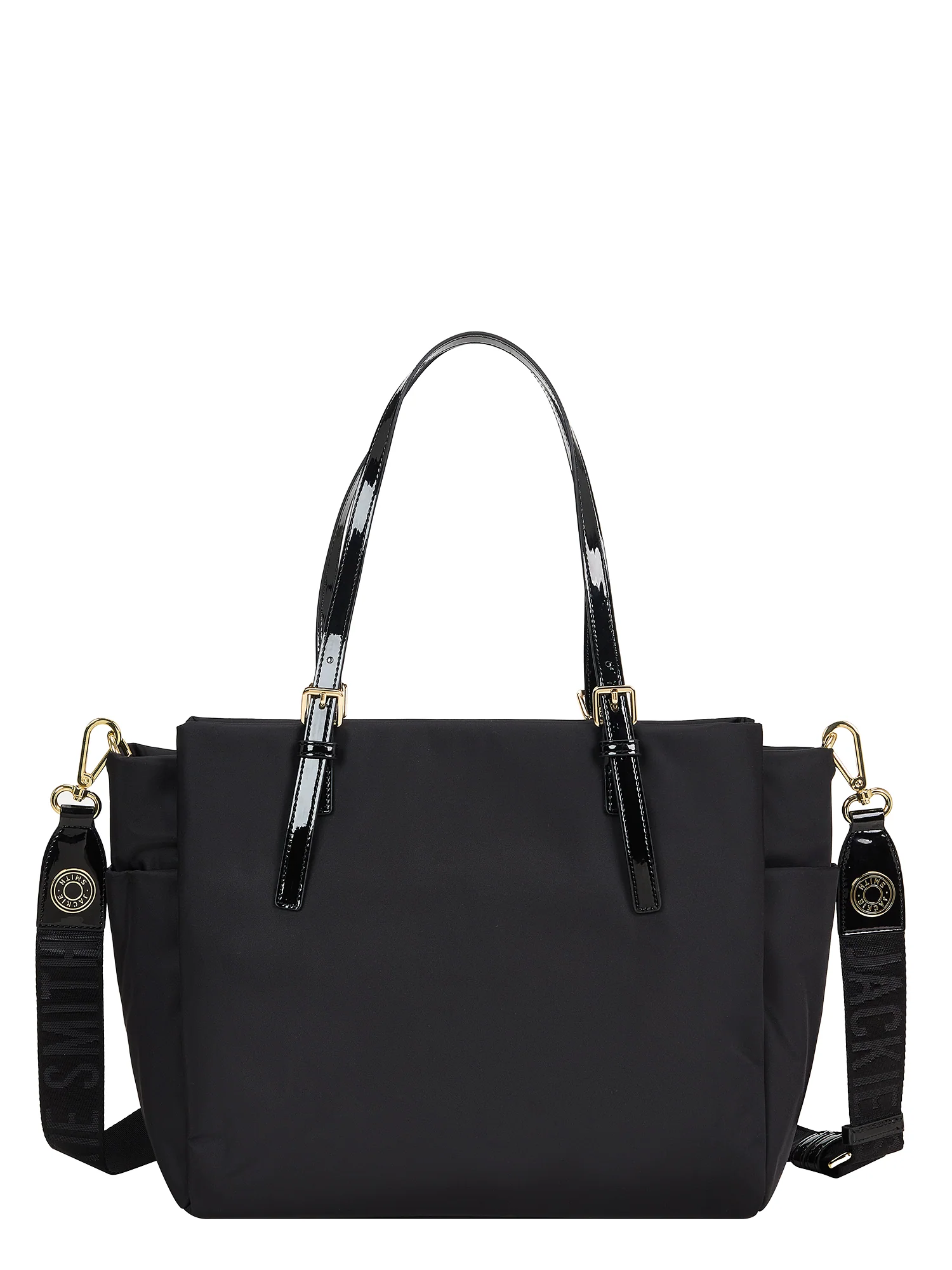 Confeccionada en nylon, combinado con glossy PU y herrajes bañados en oro, Muse Midi Tote Bag equilibra proporción y presencia con una estructura limpia y funcional. Su silueta rectangular, levemente abierta en los extremos superiores, propone un gesto gráfico y contemporáneo, mientras que los fuelles laterales aportan capacidad sin alterar su perfil depurado. Las manijas superiores permiten un uso tradicional, mientras que su strap regulable invita a llevarla cruzada con comodidad. Una pieza pensada para acompañar días largos con sobriedad y una cuota sutil de brillo.