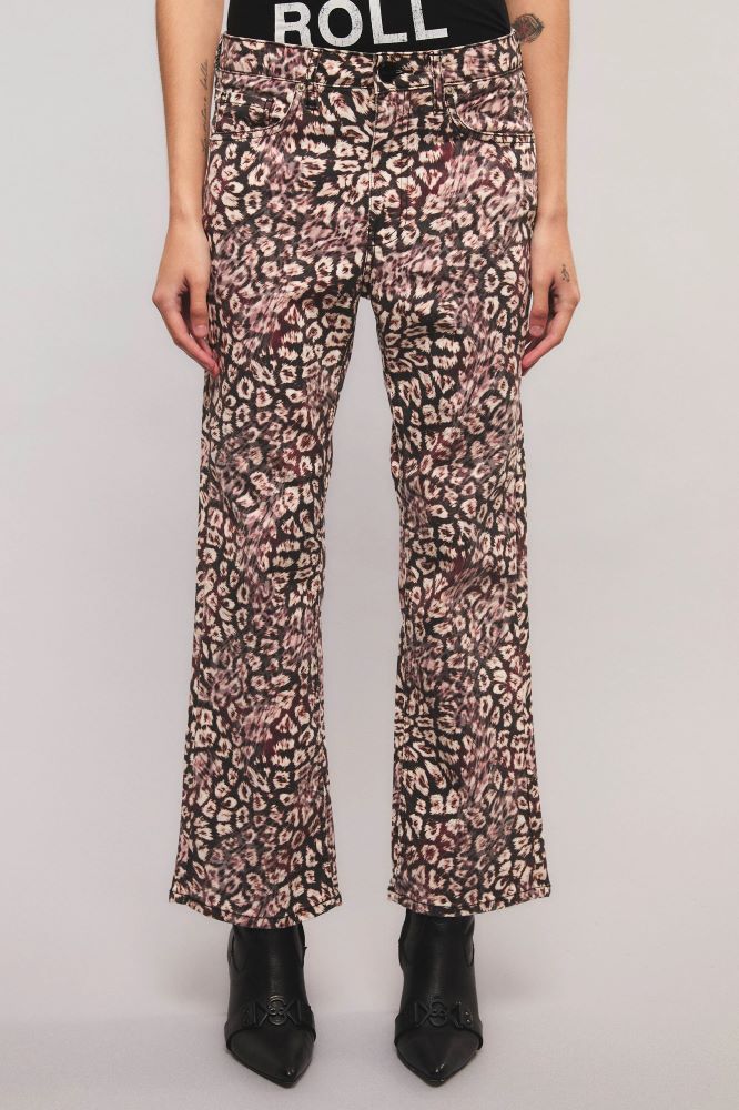 Jeans Bootcut Crop Love Rule de calce slim, tiro alto y largo crop. Confeccionado en un tejido de alta performance que garantiza confort y ajuste, presenta un estampado exclusivo desarrollado especialmente para la colección. Miranda está usando en la prenda superior un talle S, y en la prenda inferior un talle S/26. Sus medidas son: Altura 1. 73 m. Busto 77 cm. Cintura 59cm. Cadera 85cm.