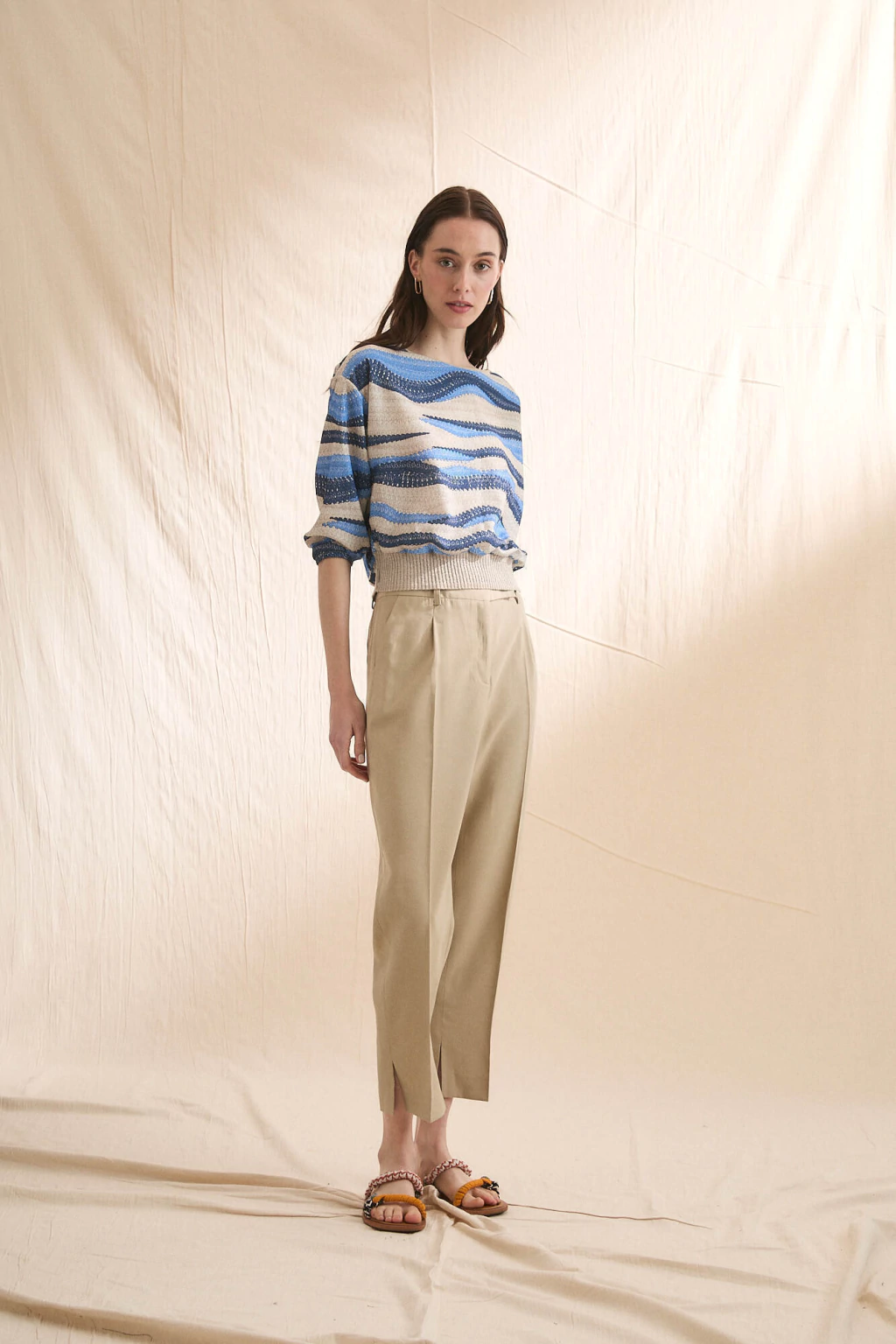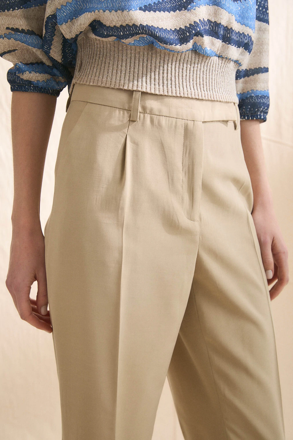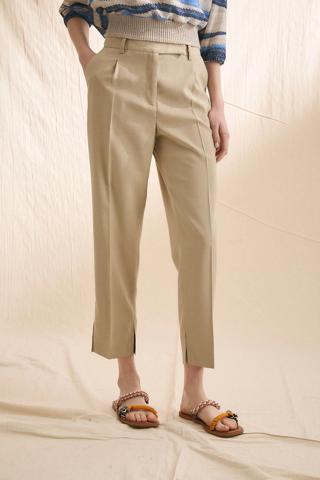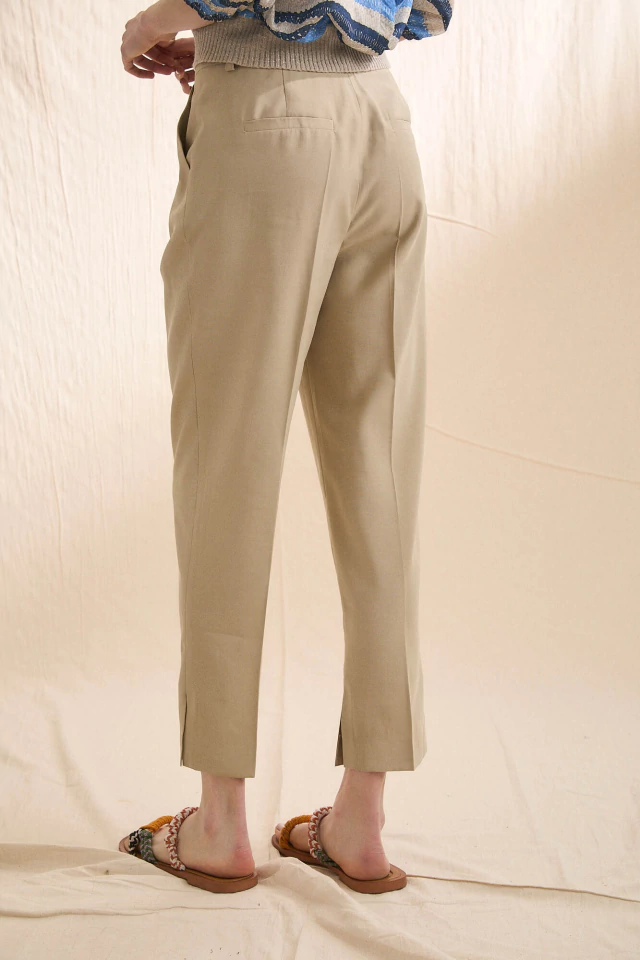Este pantalón sastrero combina elegancia y comodidad en un diseño atemporal. Confeccionado en una tela de tacto suave y caída fluida, presenta bolsillos laterales funcionales y una silueta recta que estiliza la figura. Su calce cómodo y prolijo lo convierte en una prenda esencial para lograr un look sofisticado y versátil, ideal tanto para el día como para la noche.