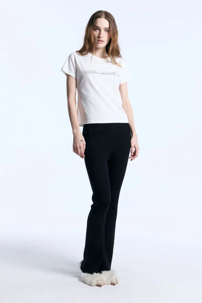 Pantalón Seia confeccionado en hilado de algodón, de calce oxford y tiro medio. Presenta cintura con elástico interno que aporta mayor confort al calce y presillas para cinturón. Cuenta con detalle de chapita metálica Ginebra aplicada en la parte trasera. Ideal para armar looks relajados o nocturnos, combinando comodidad y estilo.