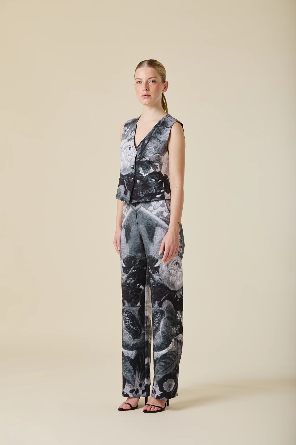 Este pantalón recto presenta una estampa exclusiva con motivos florales barroco es una pieza versátil que fusiona elegancia y modernidad. Su diseño de tiro alto y corte recto estiliza la figura, mientras que el estampado añade un toque distintivo y sofisticado. Ideal para combinar con prendas lisas y crear looks tanto formales como casuales con un aire refinado.