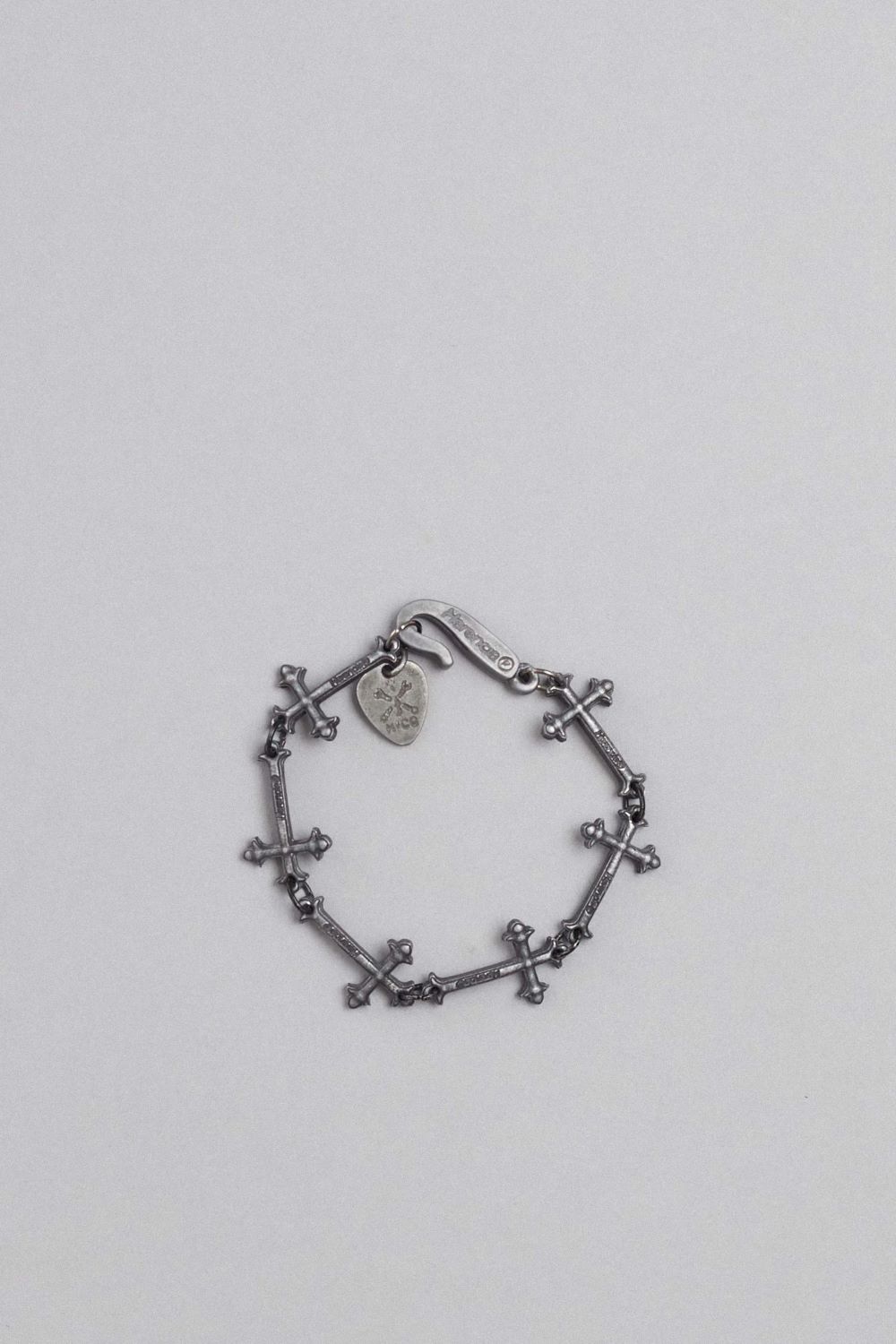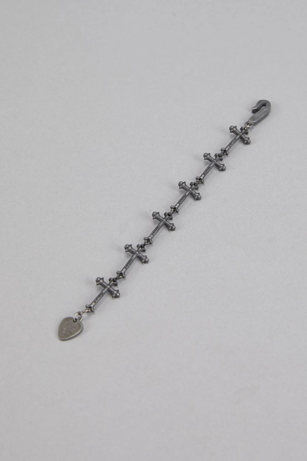 La pulsera faith está hecha en repeticion de eslabones personalizados con cruces goticas en bano plata antigua. Largo 17cm.