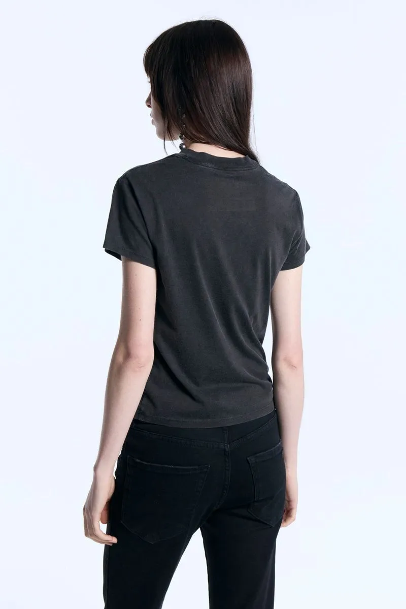 La Remera Baby Tee, de jersey de algodón pima peruano, es de calce fitted, con escote a la base y manga corta. Presenta bordado marcario a tono en frente de prenda. Esta prenda lleva un proceso de lavado artesanal que puede variar en cada una. Un básico que no te puede faltar esta temporada.