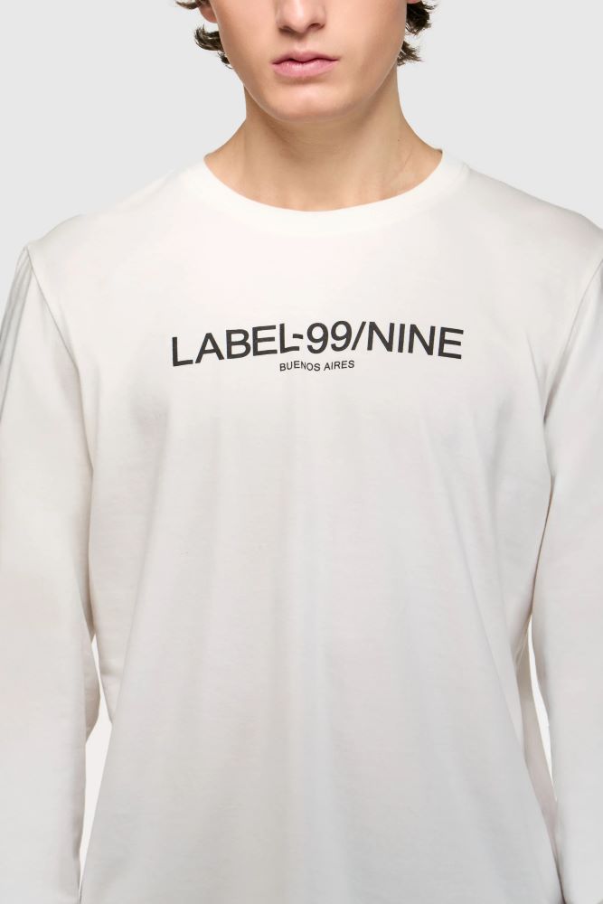 La Remera Bs As 99 tiene un calce regular con cuello redondo en ribb al tono y manga larga con puño del mismo ribb. Cuenta con estampa a contratono en delantero. Está confeccionada en jersey de algodón 24/1 y posee un proceso de lavado suavizado para darle a la prenda un tacto único. Ignacio está usando en la prenda superior un talle M y en la prenda inferior un talle L/34. Sus medidas son: Altura 1. 83m. Pecho 91 cm. Cintura 74cm. Cadera 94cm