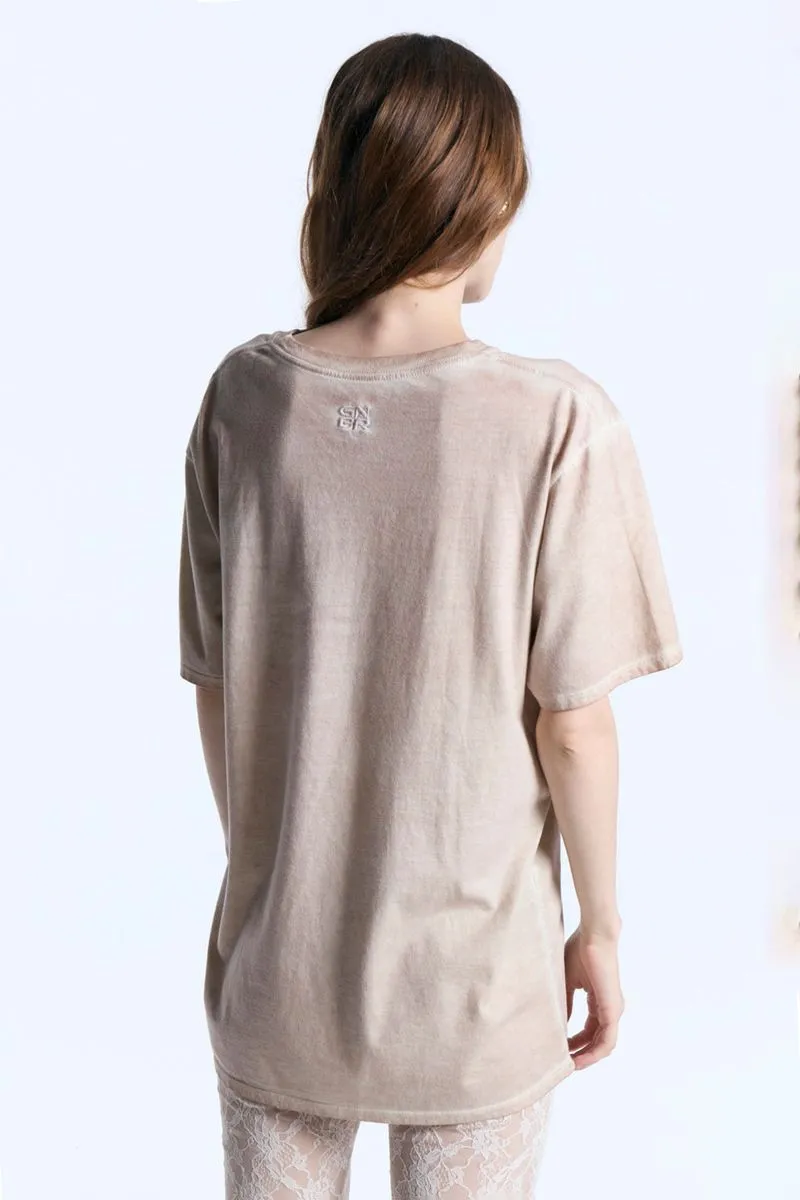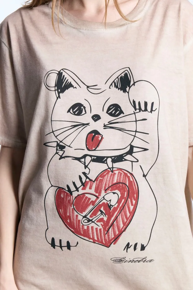 La Remera Cat, de jersey de algodón, es de calce oversize, con escote a la base y manga corta. Presenta estampa posicional en frente. Esta prenda lleva un proceso de lavado artesanal que puede variar en cada una. Un item fresco y cómodo para completar tu look de día.