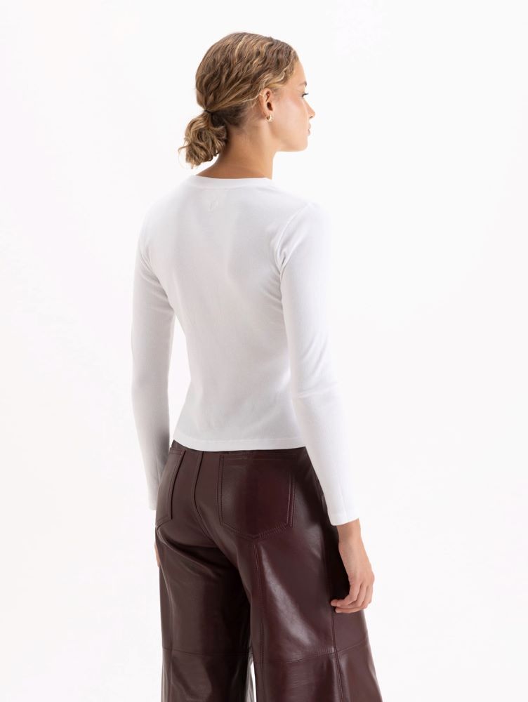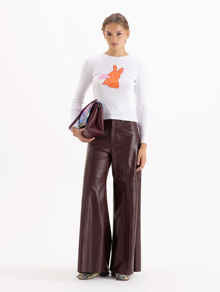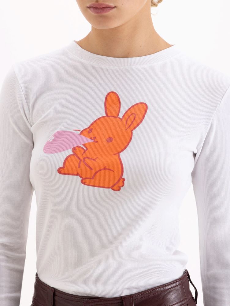 Remera Debbie de manga larga y cuello redondo, confeccionada en tejido de punto. Esta prenda forma parte de la Cápsula Il Bunny Porta Fortuna, una colaboración exclusiva con el artista Antonio Valenzuela.
