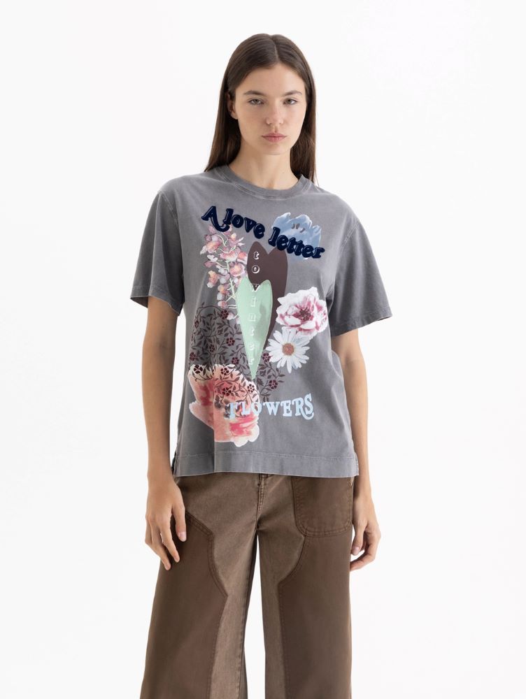 Remera Mora clásica con estampa y bordado en el delantero, confeccionada en algodón. Posee tajos en los laterales, lo que le aporta una silueta más suelta. Escote redondo a la base, mangas cortas y logo bordado en la espalda.