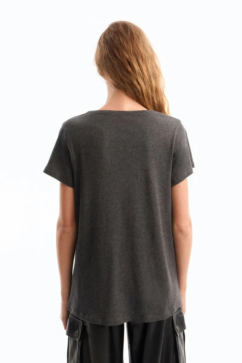 La Remera Orleans de, de jersey de algodón peruano, es de calce fitted, escote en “V” y manga corta. Presenta detalle de bordado marcario en frente a tono. Un clásico super versátil y fácil de combinar con cualquier prenda.