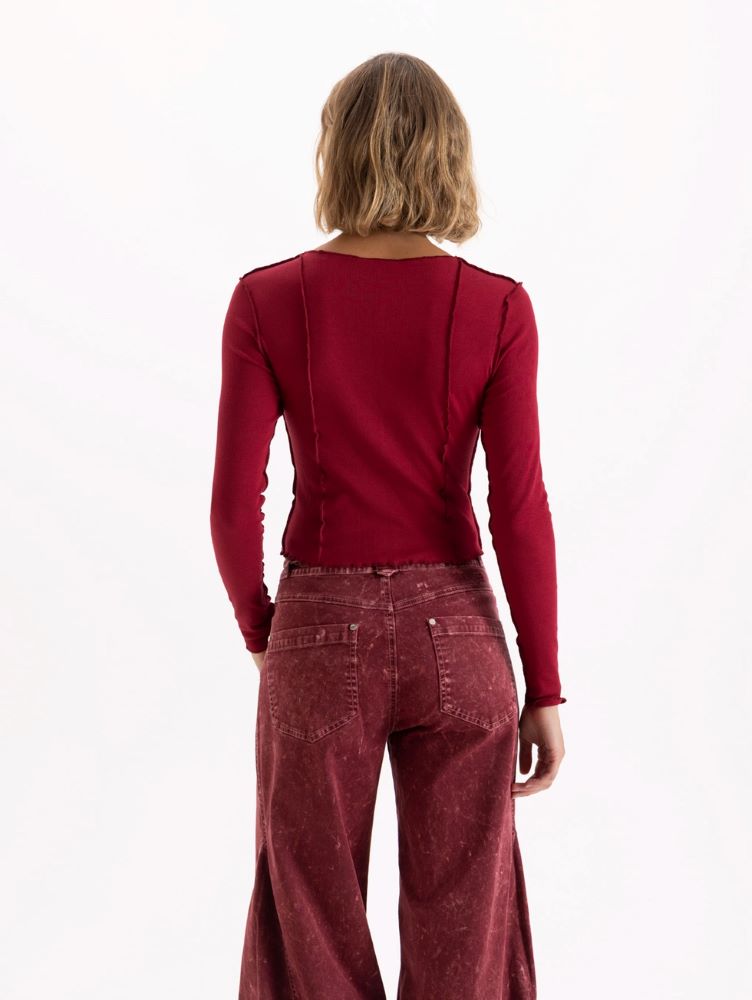 Remera Petit de manga larga y cuello redondo, diseñada con un largo modular a la altura de la primera cadera. Se destaca por sus costuras externas a la vista en el delantero, la espalda y las mangas. Su confección en algodón con elastano permite un ajuste cómodo y favorecedor.