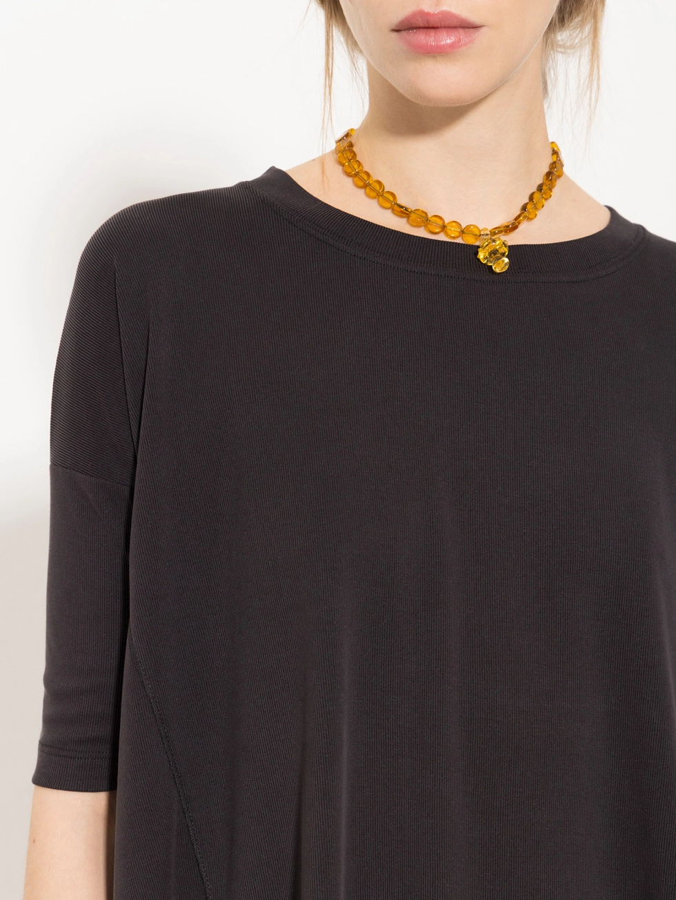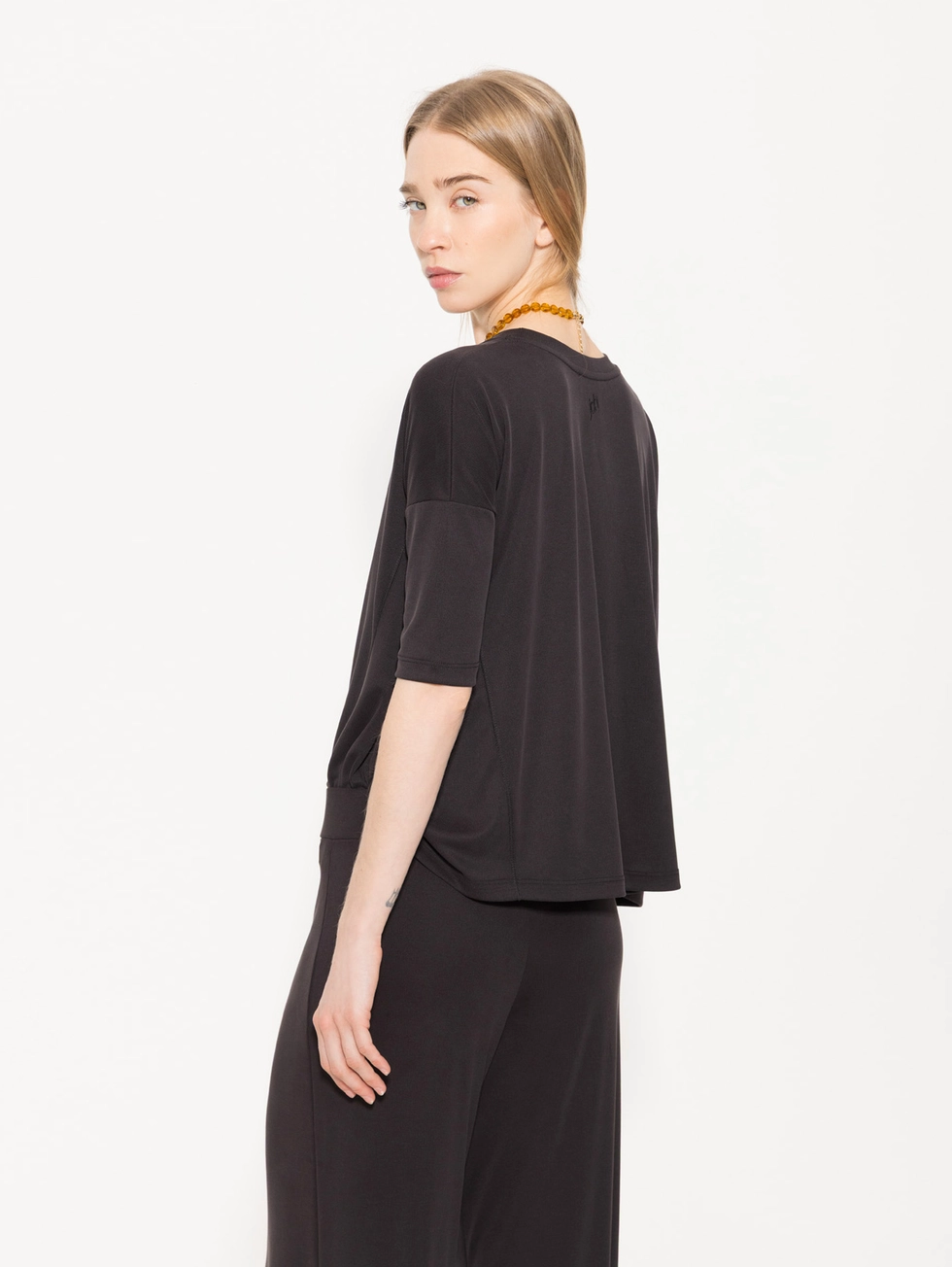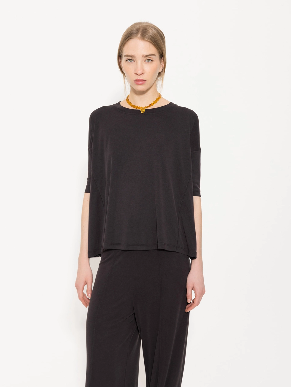 Remera Teo confeccionada en tela de punto, con escote redondo y quillas laterales que aportan mayor amplitud y comodidad a la prenda. Es de fit amplio.