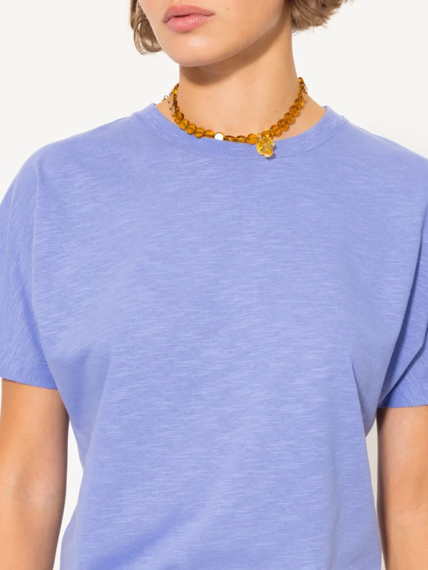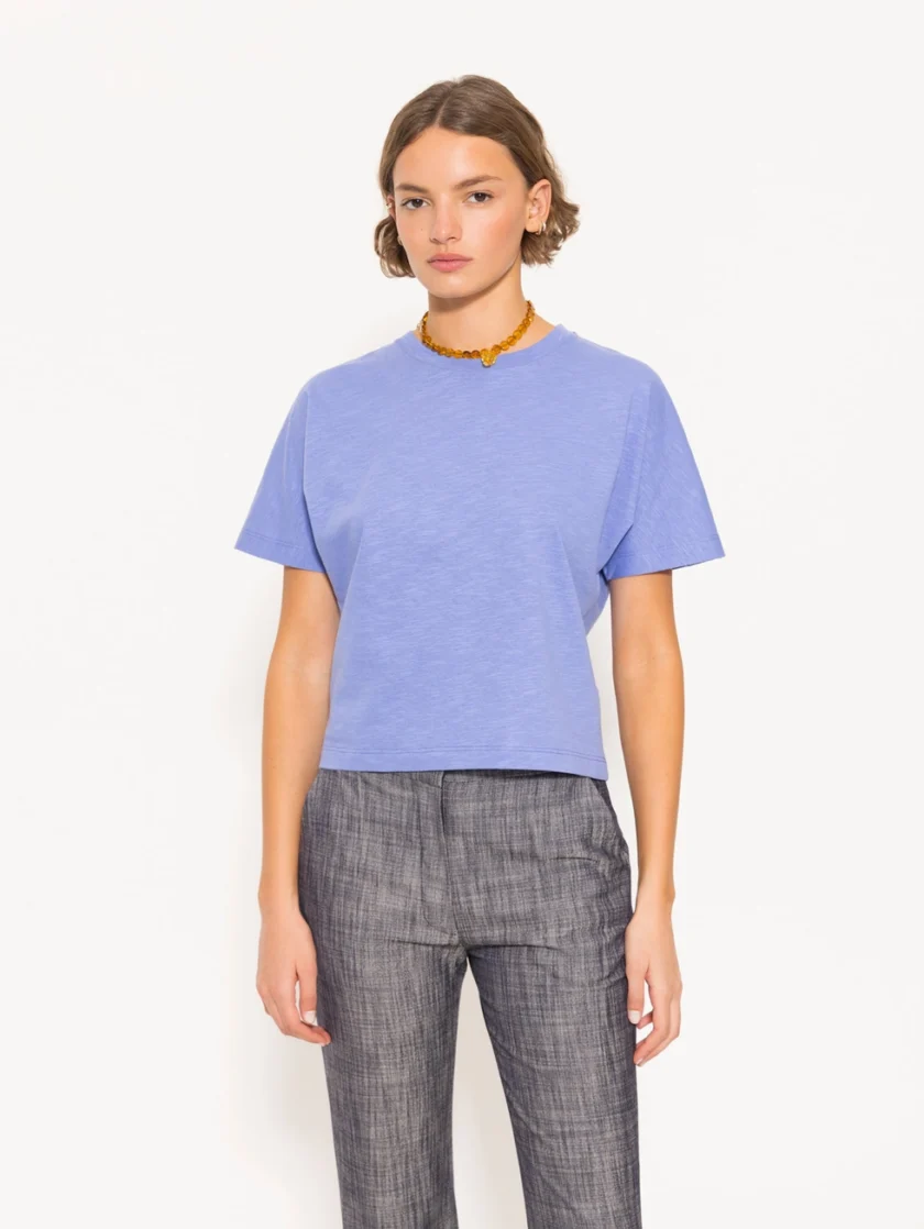 Remera Vanessa confeccionada en flamé de algodón liso, con escote redondo y mangas tipo murciélago que aportan un aire relajado. De calce cómodo y textura liviana, es un básico fresco y versátil para el día a día.
