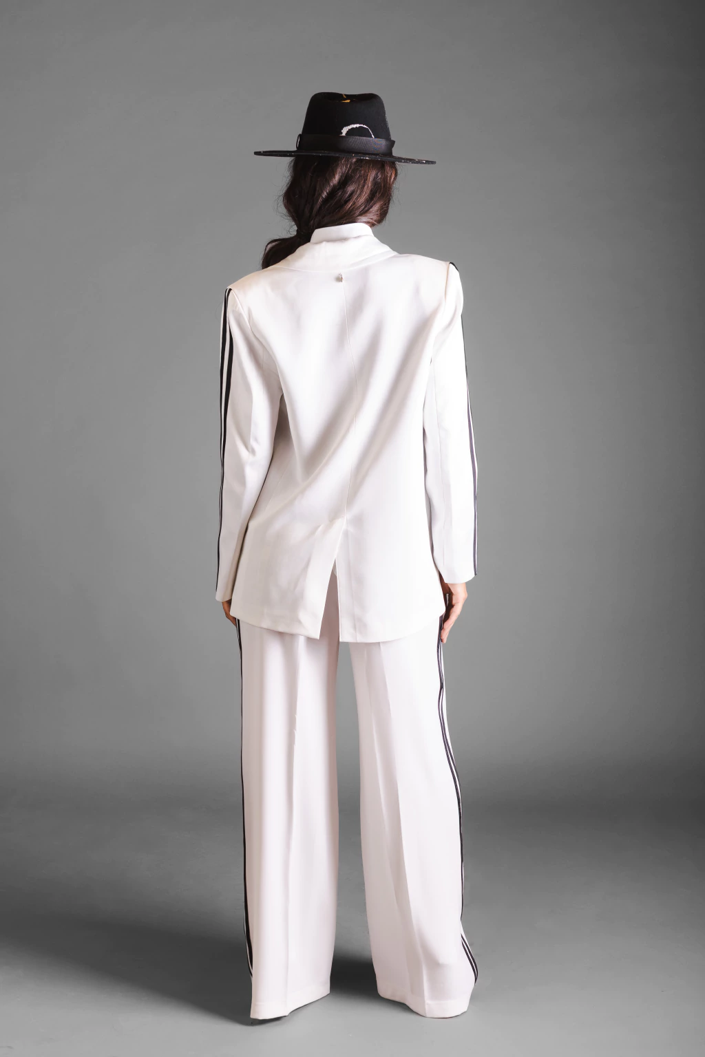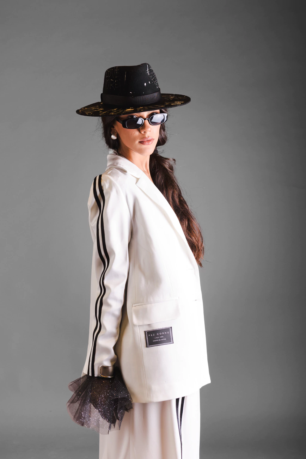 Saco sastrero de corte estructurado, confeccionado en tejido fluido con caída impecable. Presenta líneas laterales en las mangas que aportan un toque moderno y estilizan el diseño. Su silueta definida y elegante lo convierte en una prenda versátil, ideal para completar looks de impacto con el Pantalón Balansat.