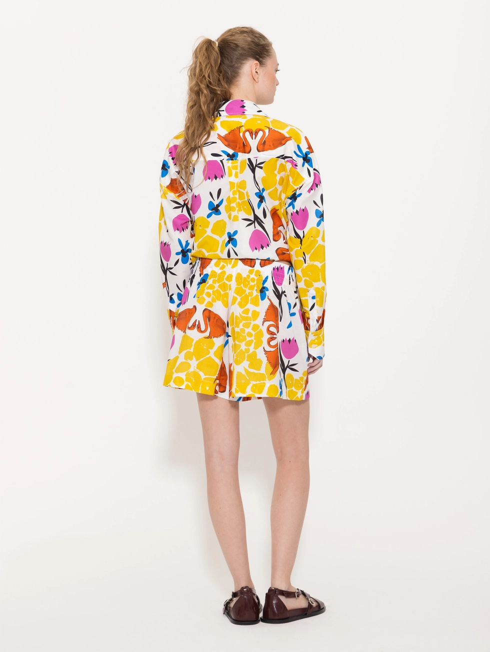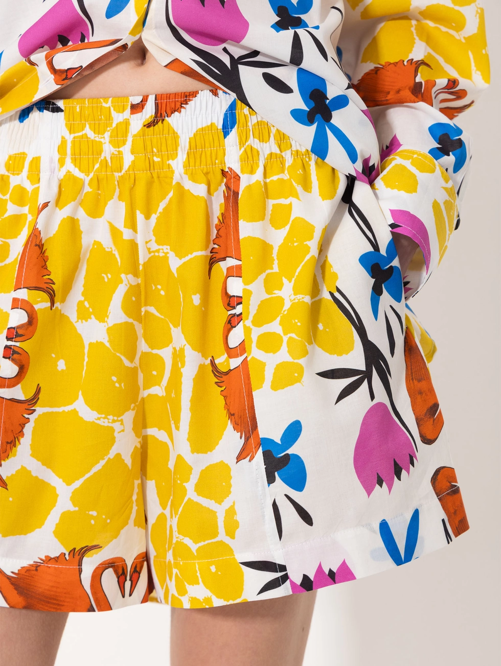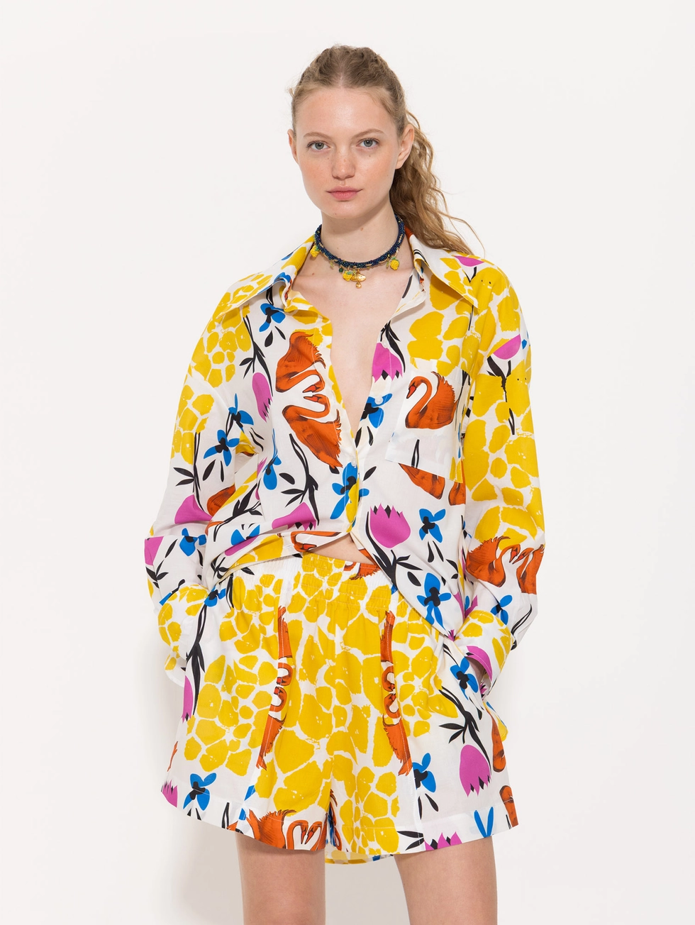 Short Swan confeccionado en poplín liviano con estampa exclusiva JCH. Tiene tiro medio, cintura elastizada en la parte trasera para un calce cómodo y bolsillos laterales que suman practicidad. Su silueta amplia aporta movimiento y lo convierte en un aliado ideal para los días de verano, ya sea para un look relajado de día o combinado en conjunto con la camisa Swan para un total look distintivo.
