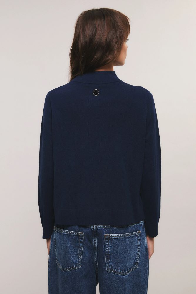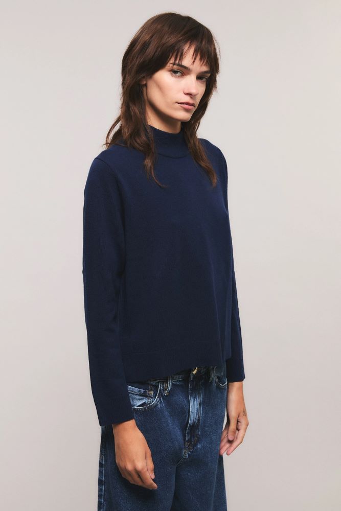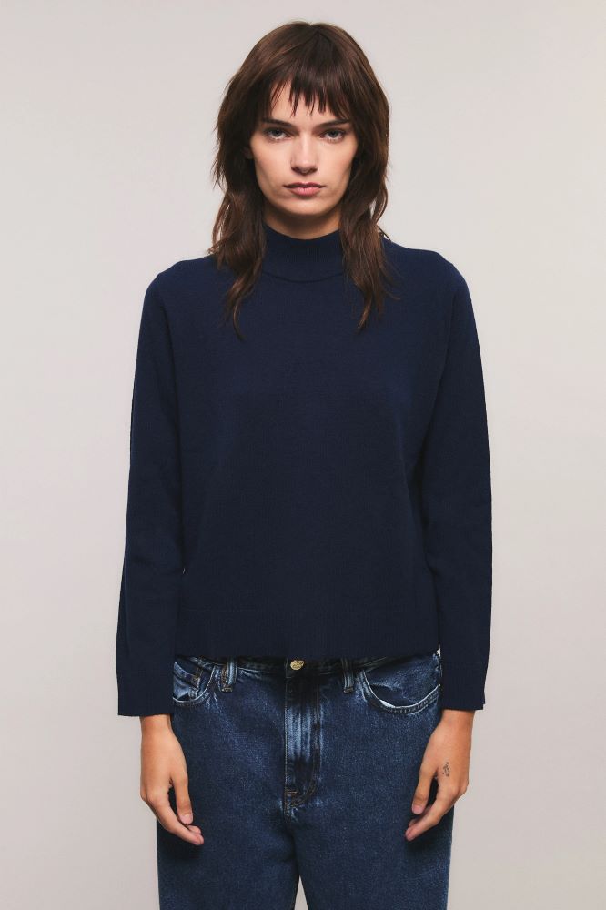 El sweater Elementary tiene calce recto y relajado. Está tejido 100% en lana merino, caracterizado por ser un material noble. Tiene largo a la cadera, mangas largas y escote redondo semi polera. Además, presenta tajos en ambos laterales y detalles en rib. Miranda está usando en la prenda superior un talle S, y en la prenda inferior un talle S/26. Sus medidas son: Altura 1.73 m. Busto 77 cm. Cintura 59cm. Cadera 85cm