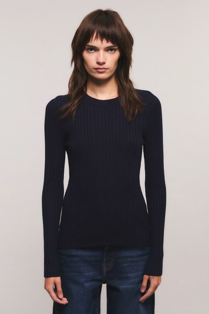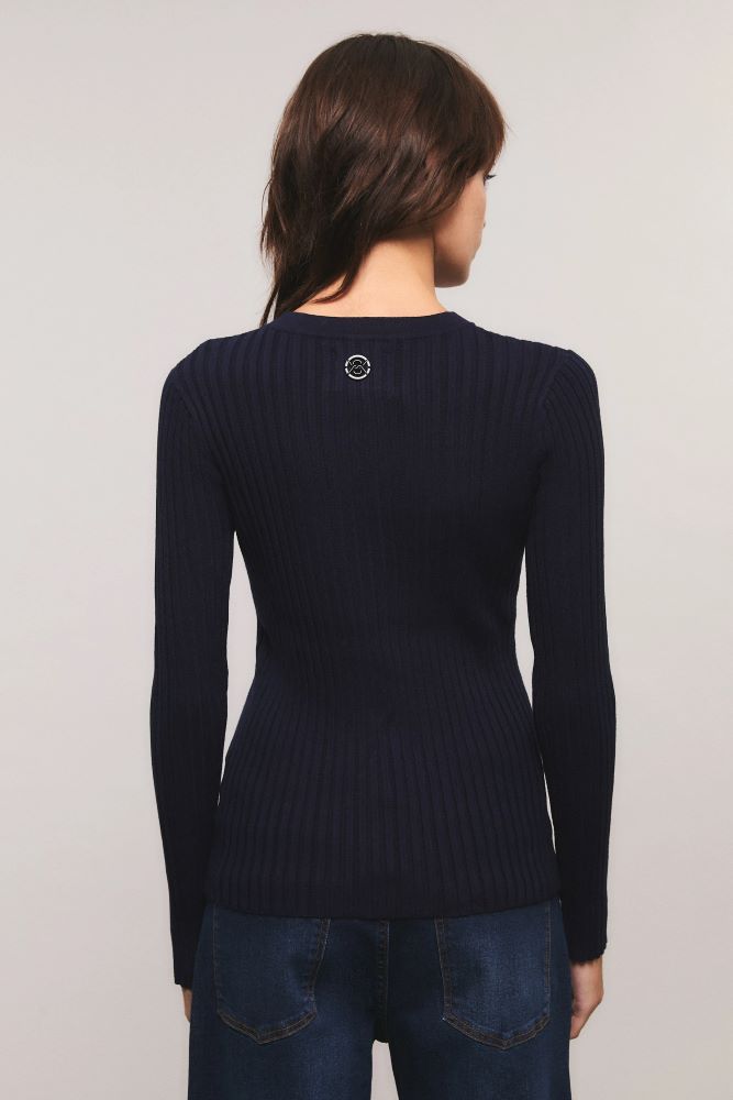 El sweater Fondness tiene calce slim con cuello redondo y manga larga. Está tejido en morley con detalles de calados en toda la prenda. Miranda está usando en la prenda superior un talle S, y en la prenda inferior un talle S/26. Sus medidas son: Altura 1.73 m. Busto 77 cm. Cintura 59cm. Cadera 85cm.