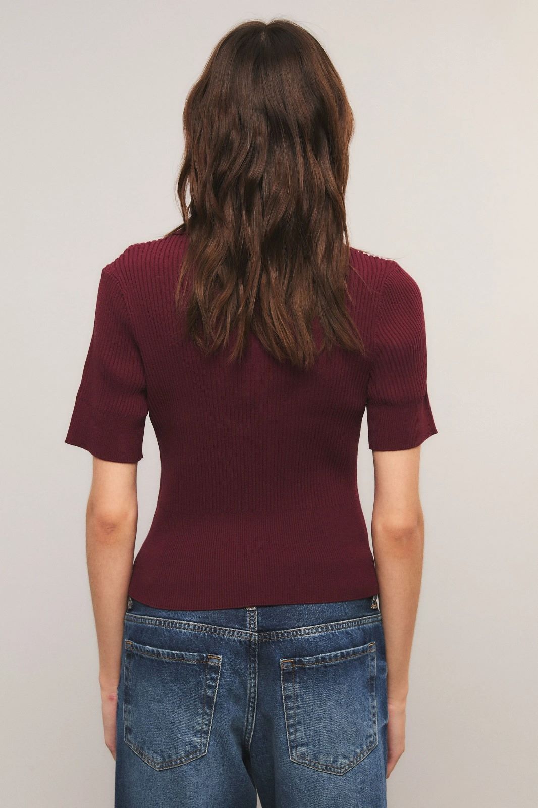 El top Hellraiser tiene un calce slim, con cuello redondo y mangas cortas. Está confeccionado en morley, con cuello en interlock y botones personalizados de la marca. Miranda está usando en la prenda superior un talle S, y en la prenda inferior un talle S/26. Sus medidas son: Altura 1.73 m. Busto 77 cm. Cintura 59cm. Cadera 85cm.